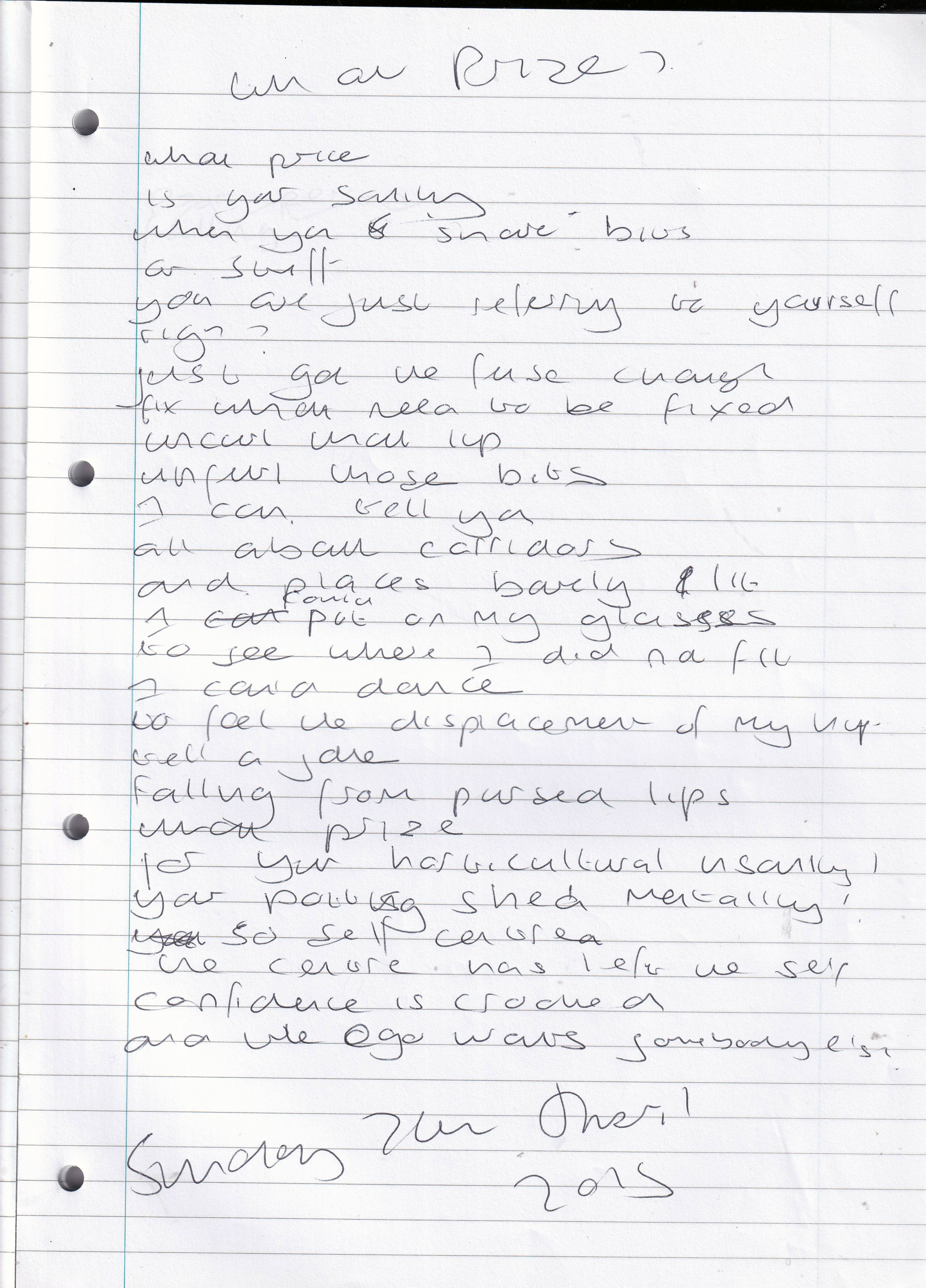 What Prize? – Written Sunday 26th April 2015 (Aged 40)