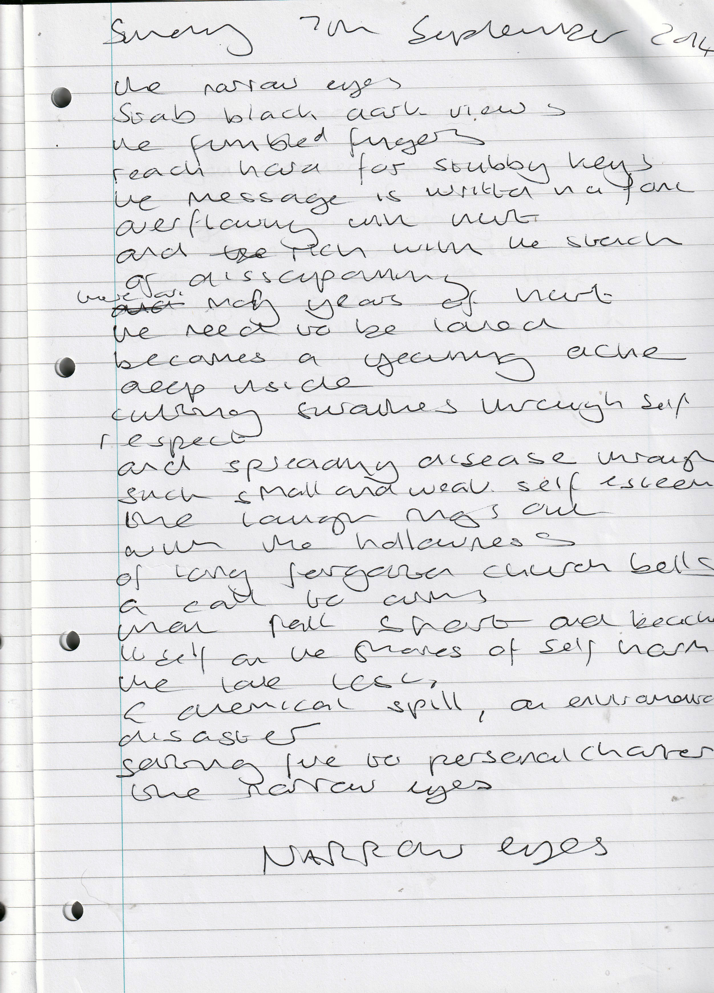 Narrow Eyes – Written Sunday 7th September 2014 (Aged 39)