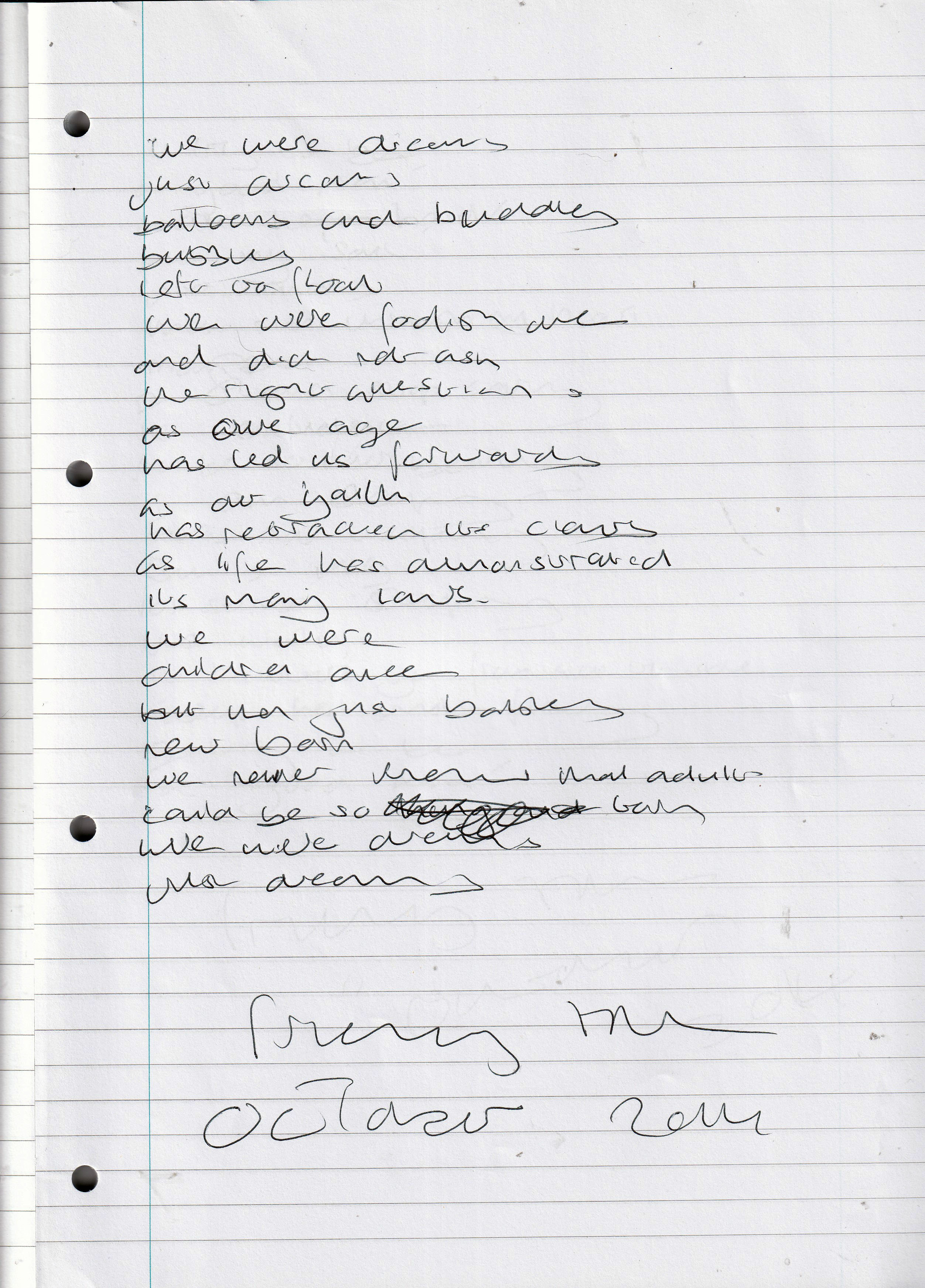 We Were Dreamers – Written Friday 17th October 2014 (Aged 39)