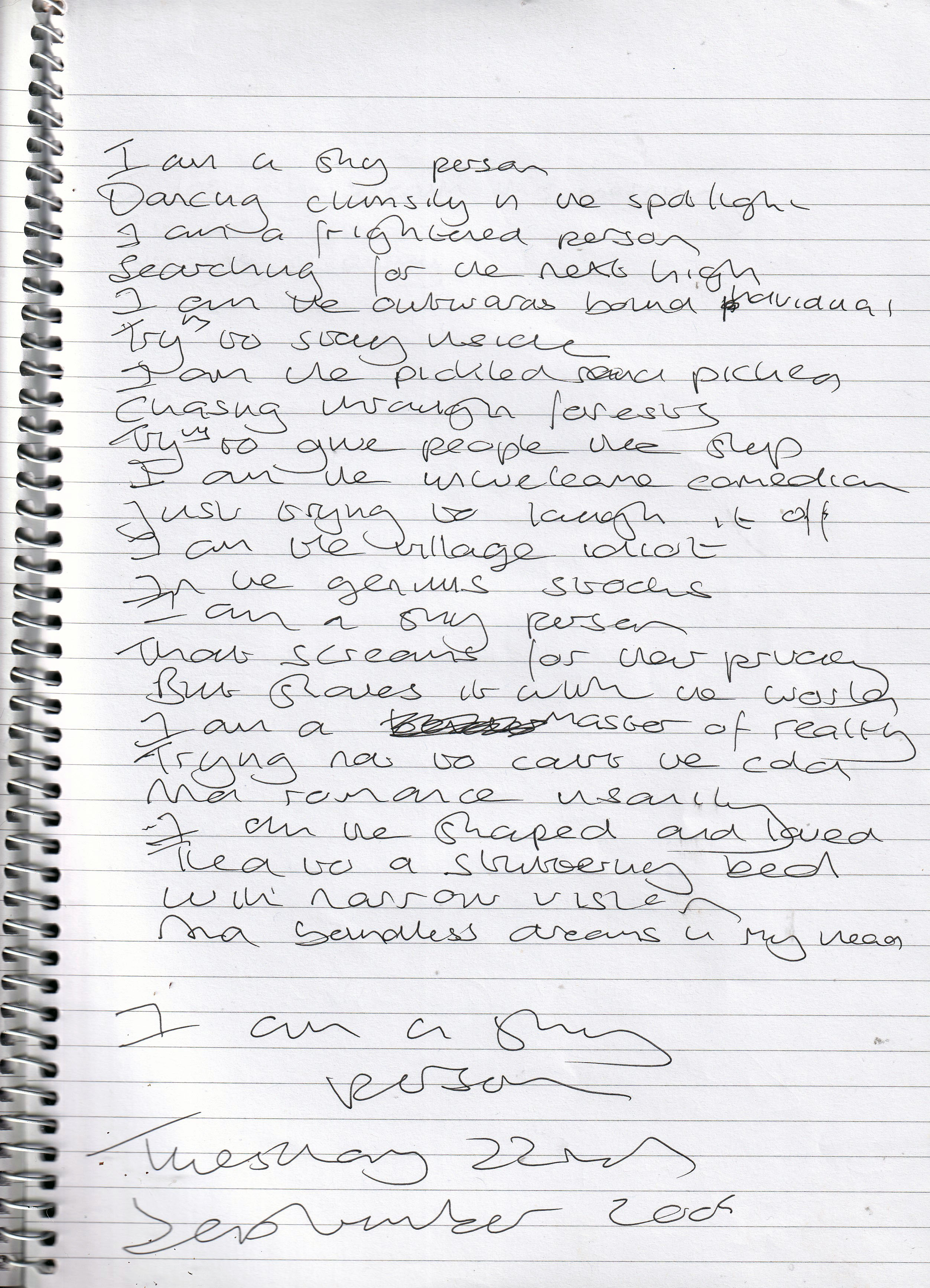 I Am a Shy Person – Written Tuesday 22nd September 2009 (Aged 34)