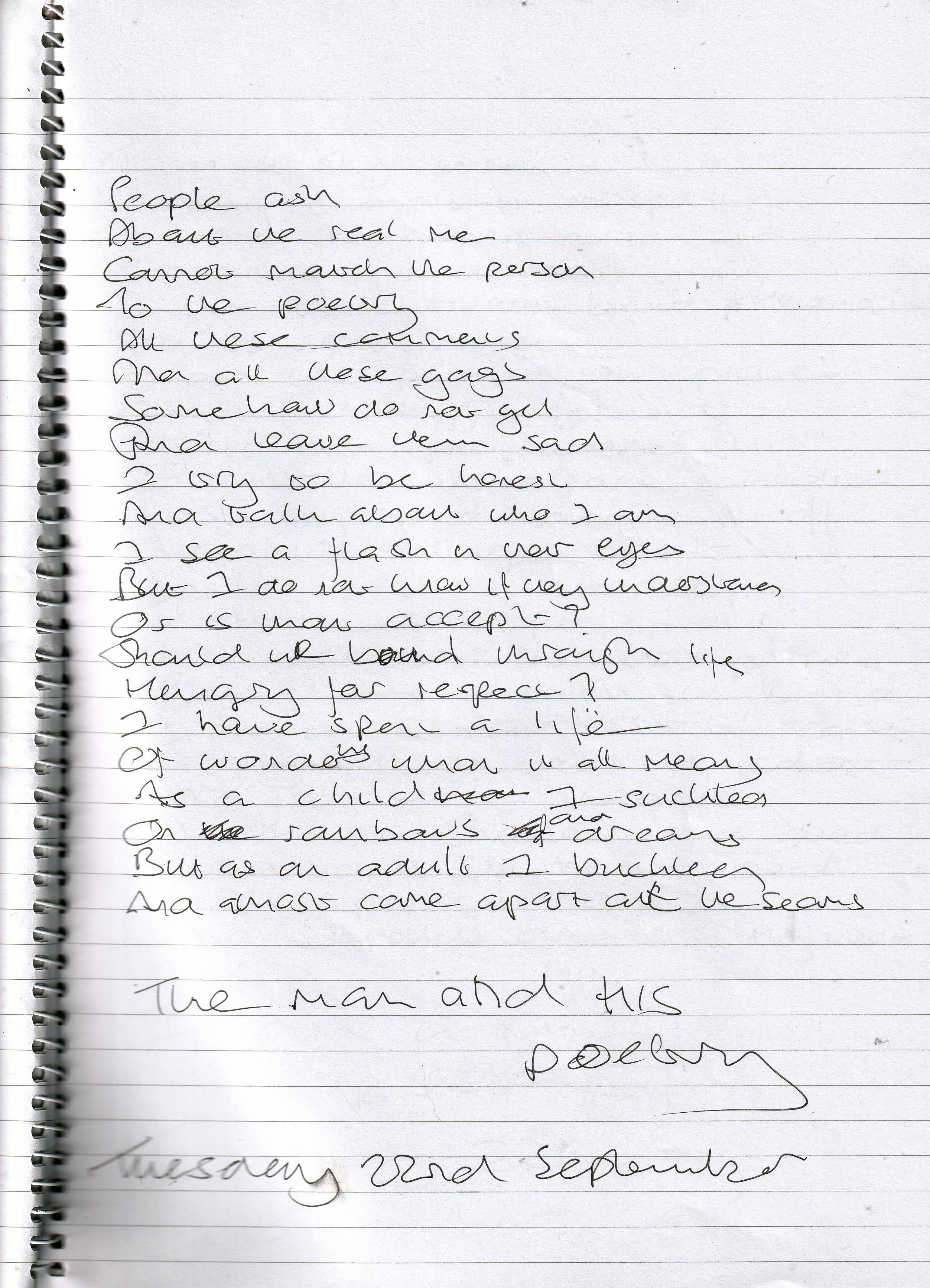 The Man and His Poetry – Written Tuesday 22nd September 2009 (Aged 34)