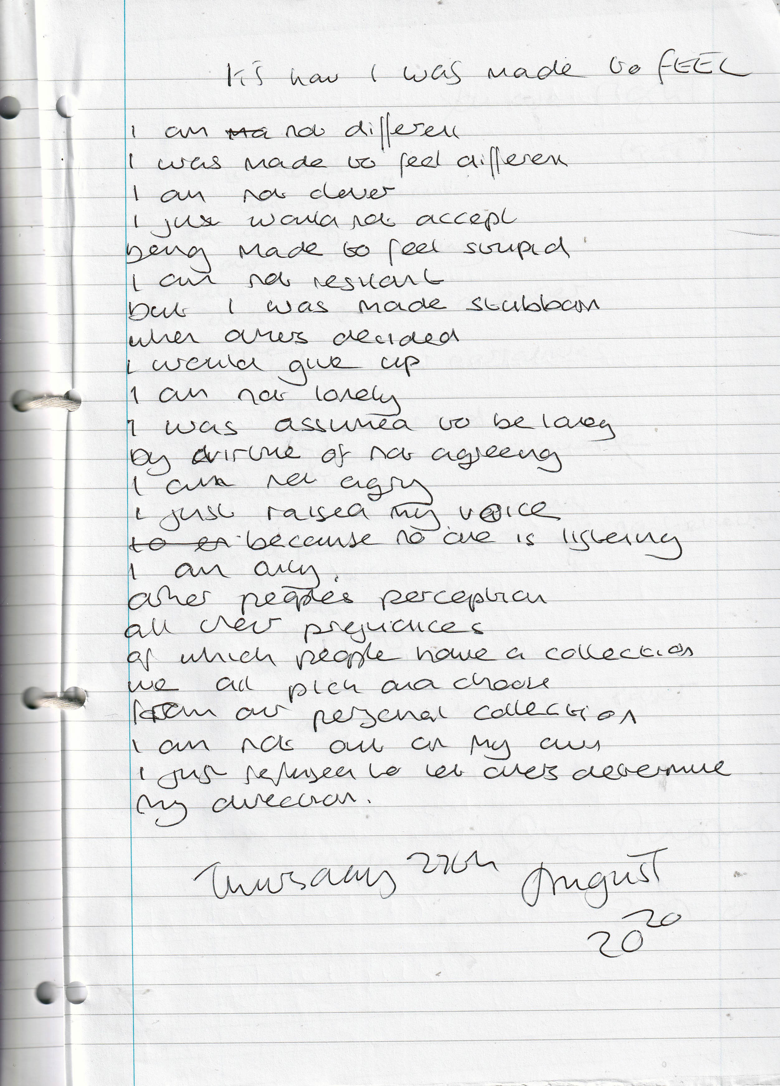 How I Was Made to Feel – Written Thursday 27th August 2020 (Aged 45)