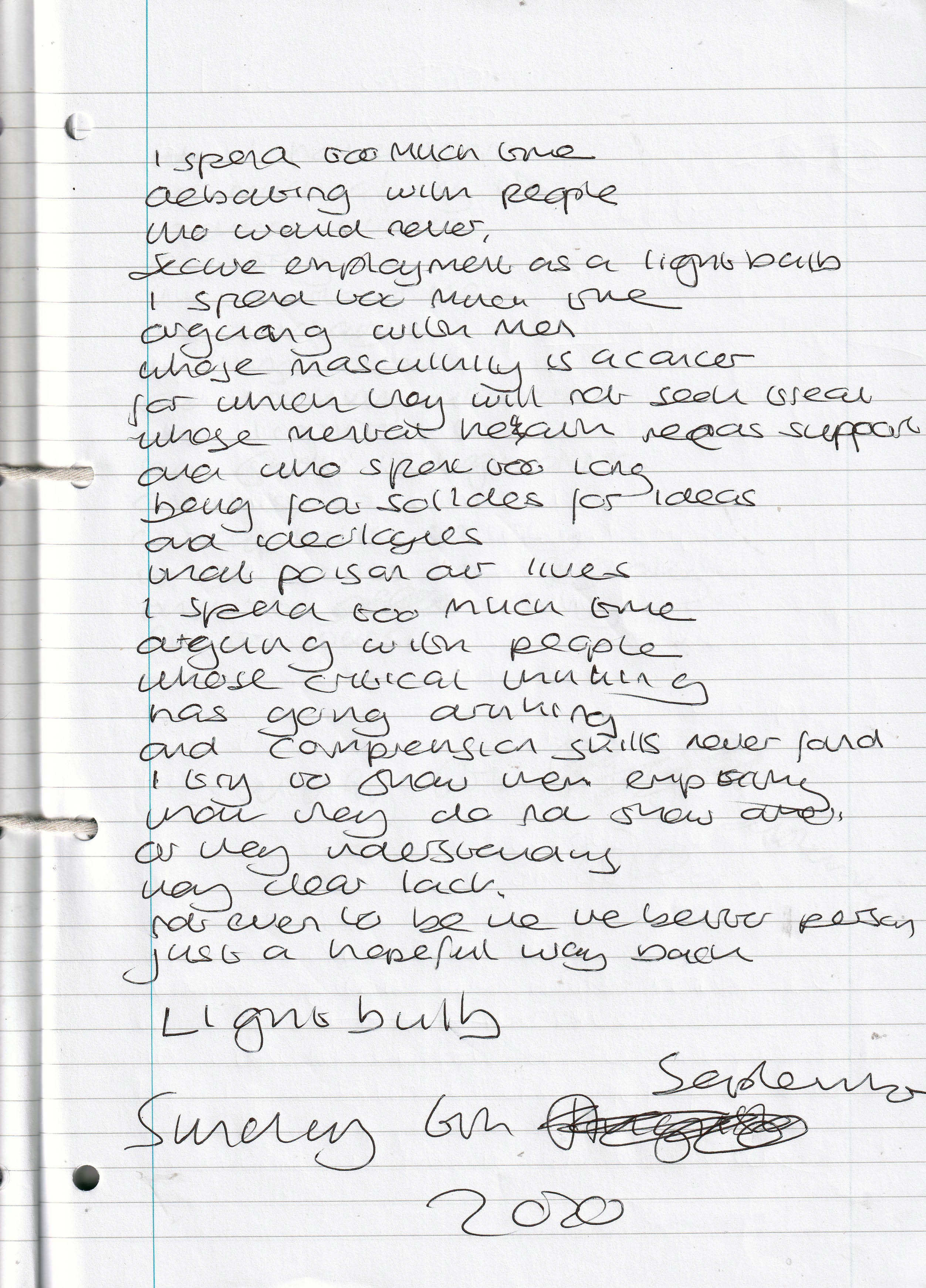 Lightbulb – Written Sunday 6th September 2020 (Aged 45)