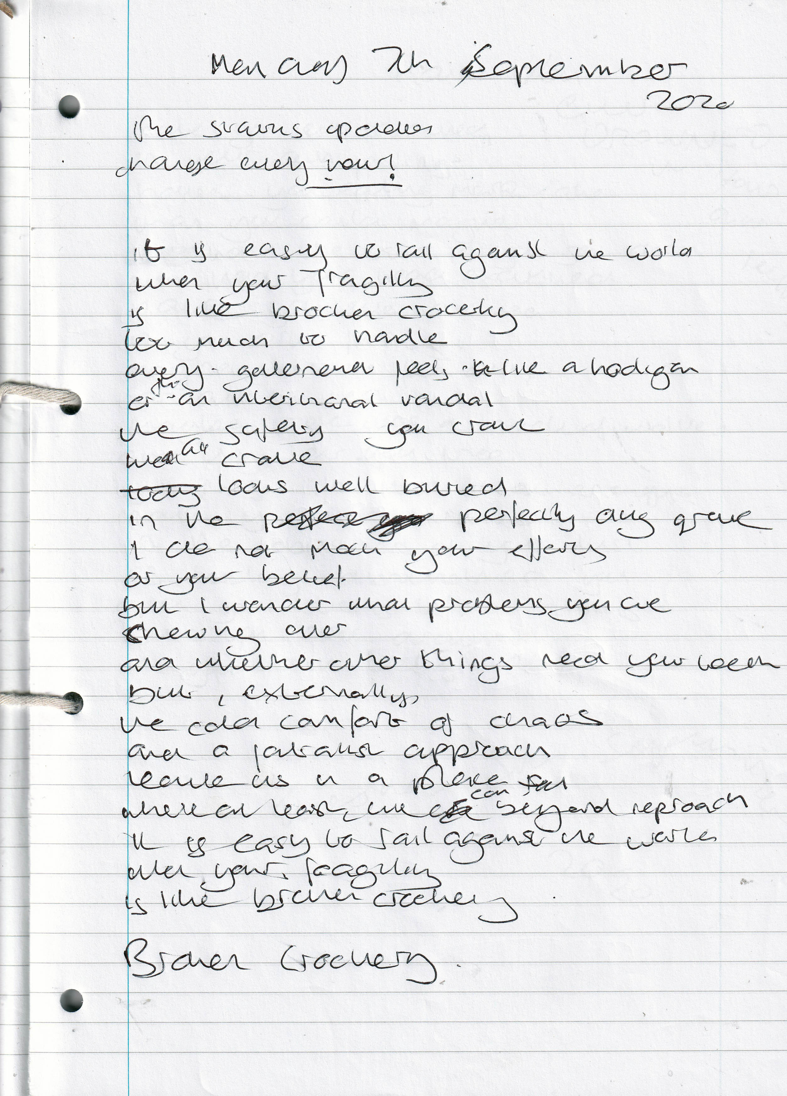 Broken Crockery – Written Monday 7th September 2020 (Aged 45)