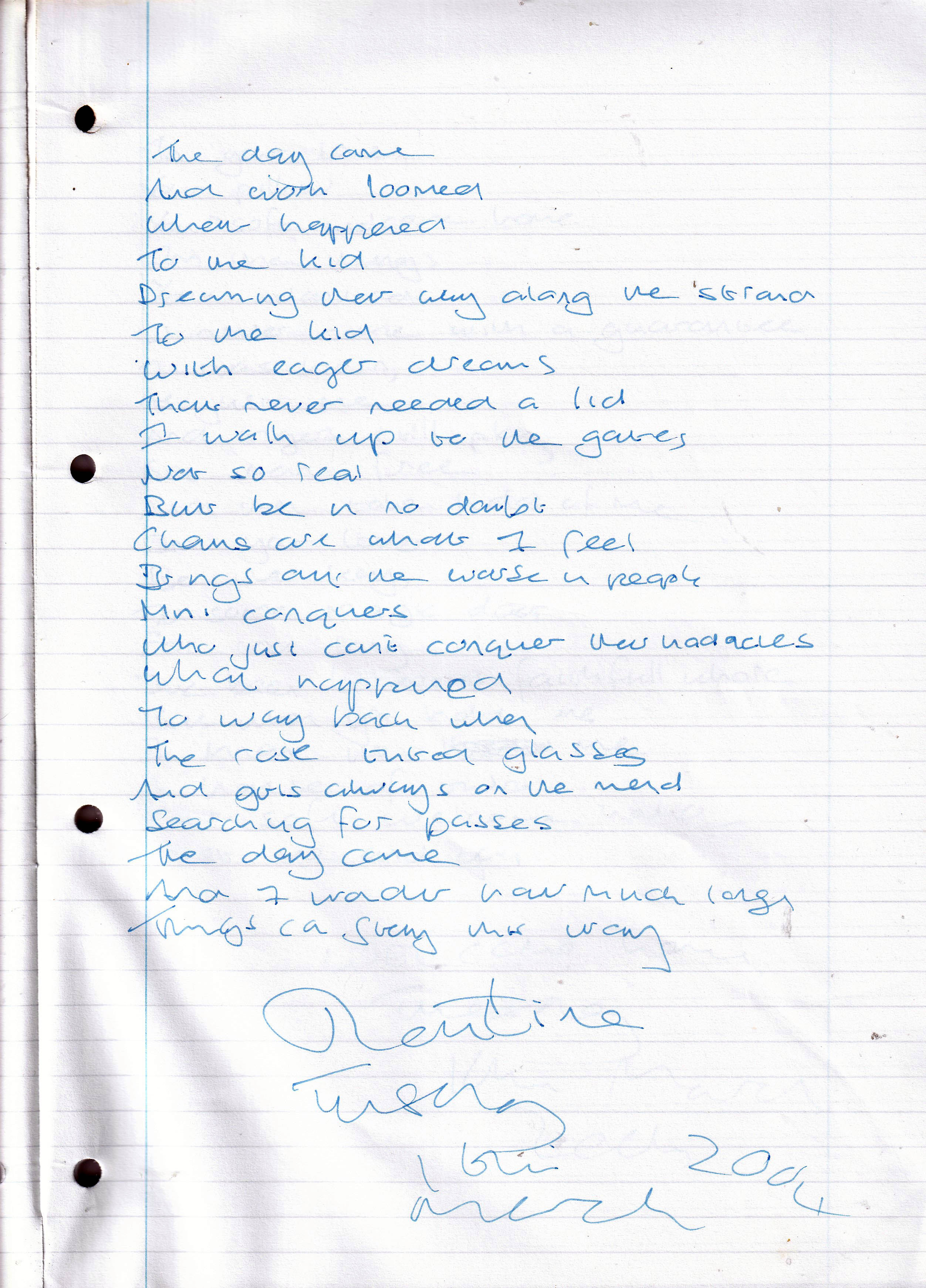 Remembering – Written Tuesday 16th March 2004 (Aged 29)
