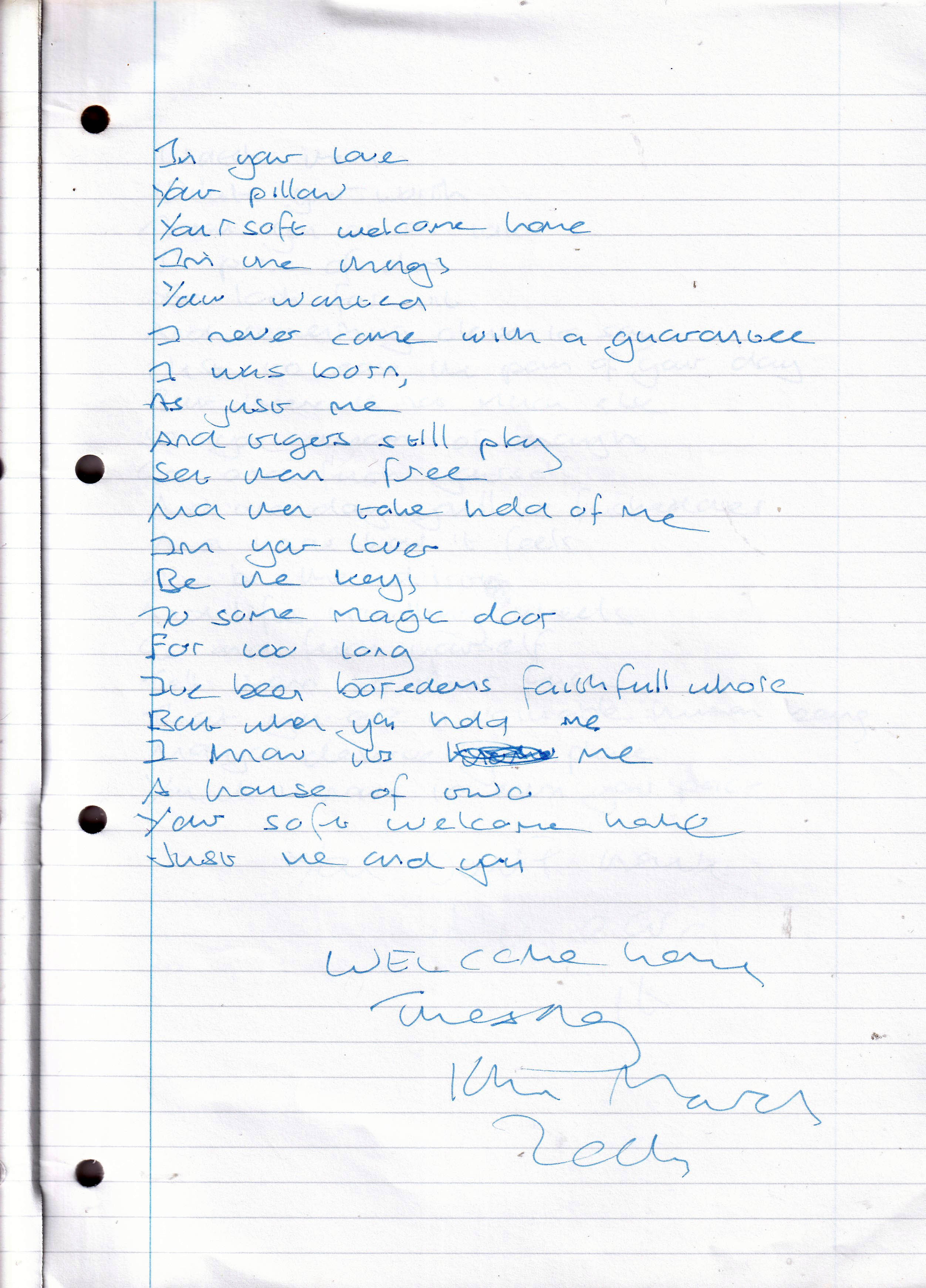 Welcome Home – Written Tuesday 16th March 2004 (Aged 24)