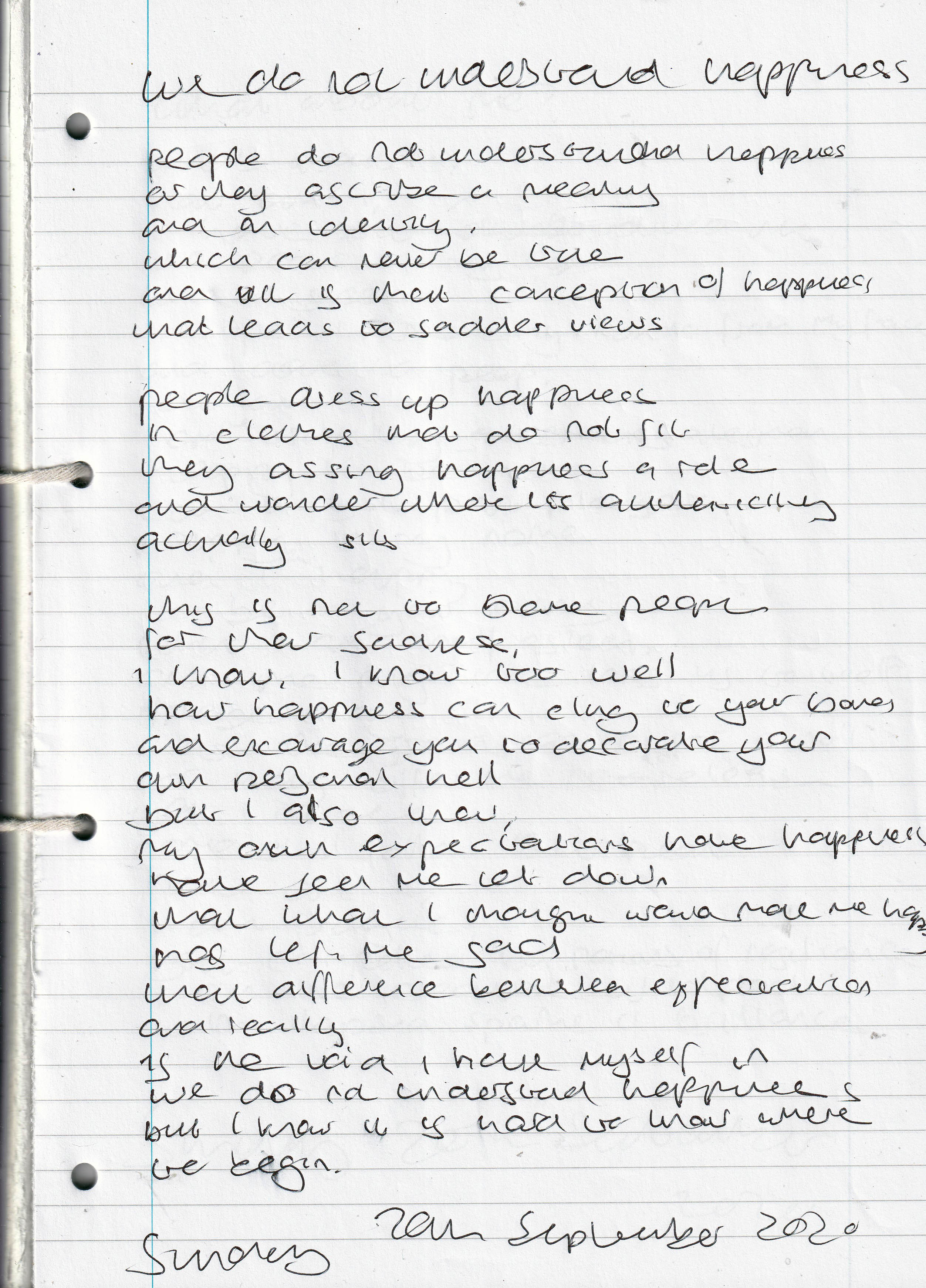 We Do Not Understand Happiness – Written Sunday 20th September 2020 (Aged 45)