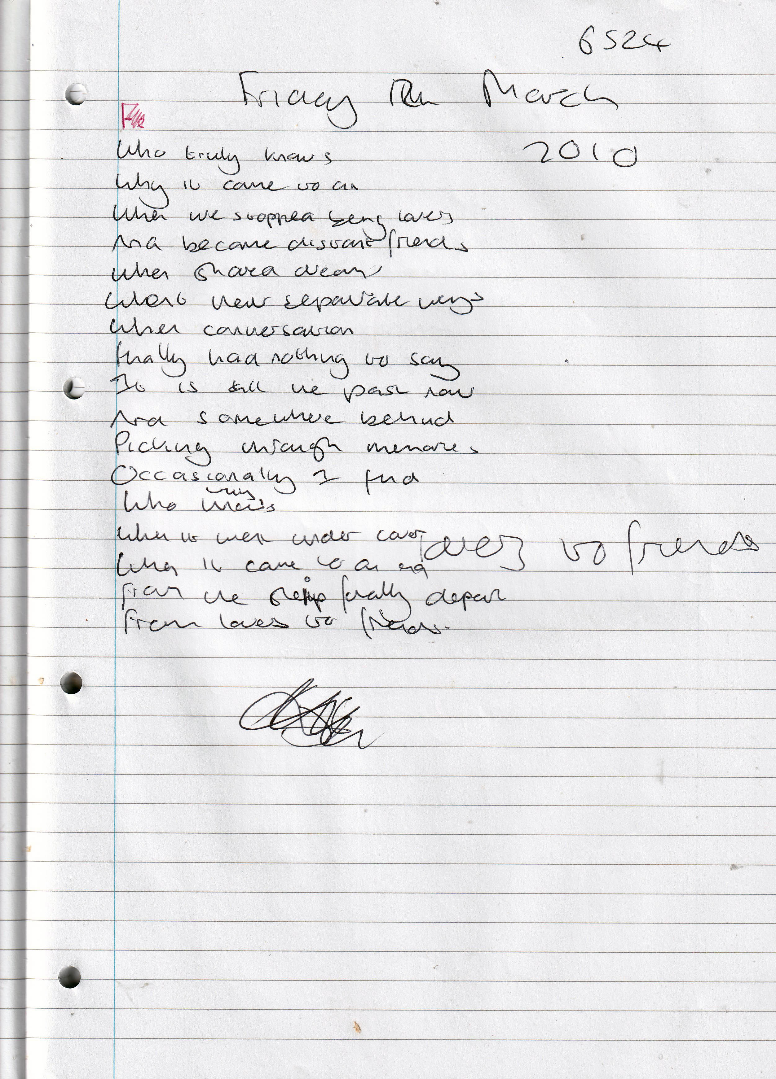 Lovers to Friends – Written Friday 12th March 2010 (Aged 35)