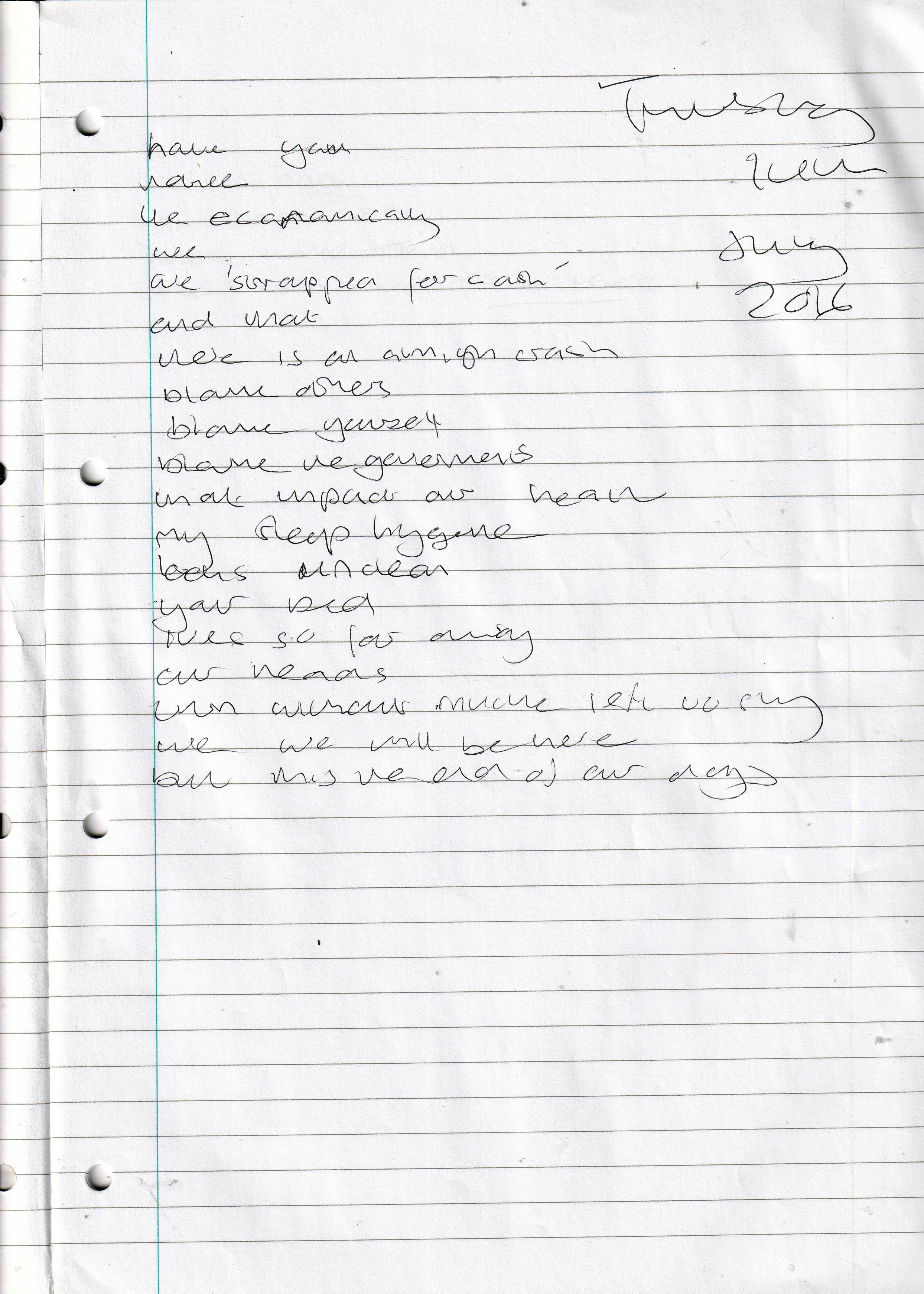 Strapped for Cash – Written Thursday 14th July 2016 (Aged 41)