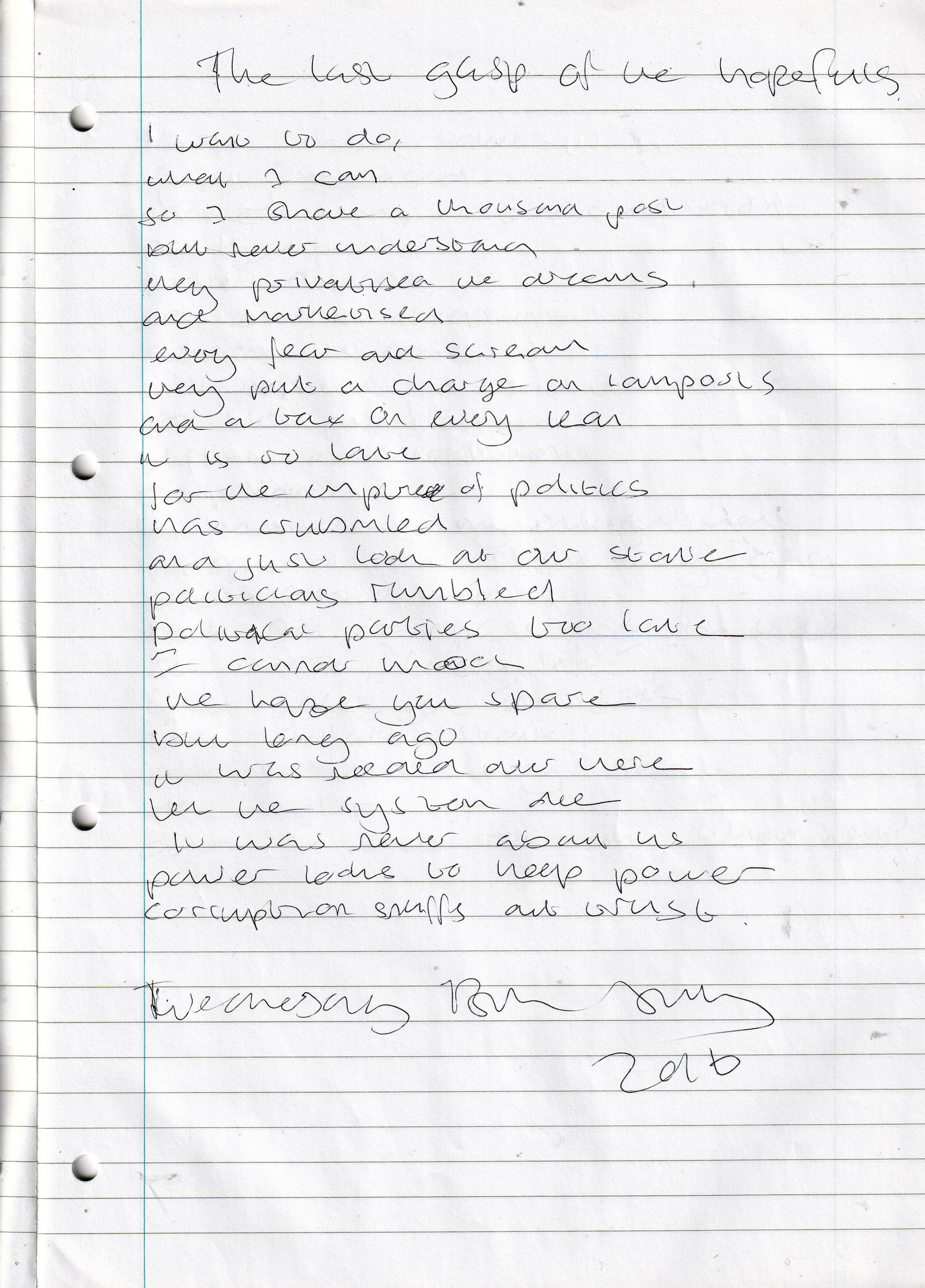 The Last Gasp of the Hopefuls – Written Wednesday 13th July 2016 (Aged 41)