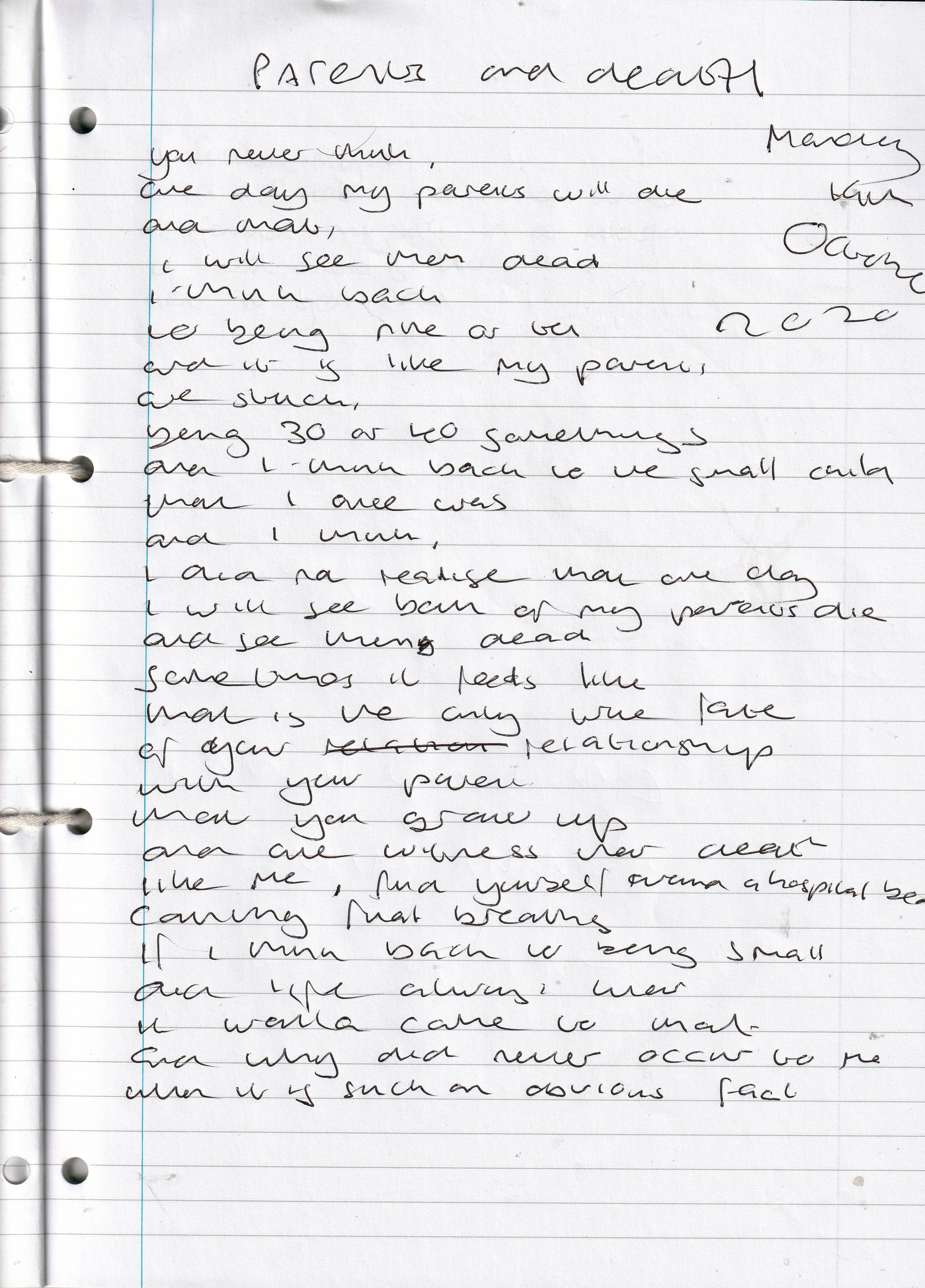 Parents Die – Written Monday 19th October 2020 (Aged 45)