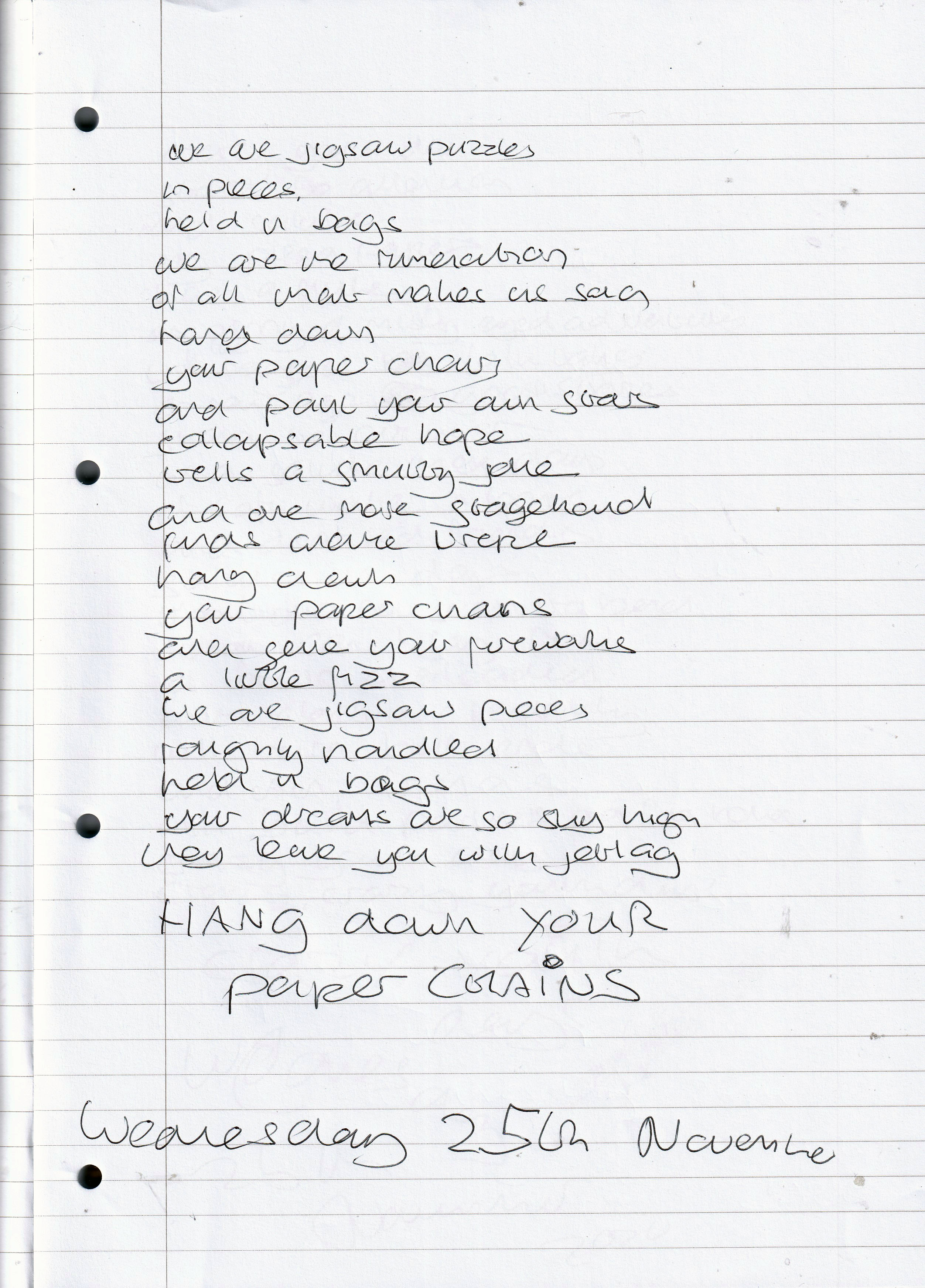 Hang Down Your Paper Chains – Written Wednesday 25th November 2020 (Aged 45)