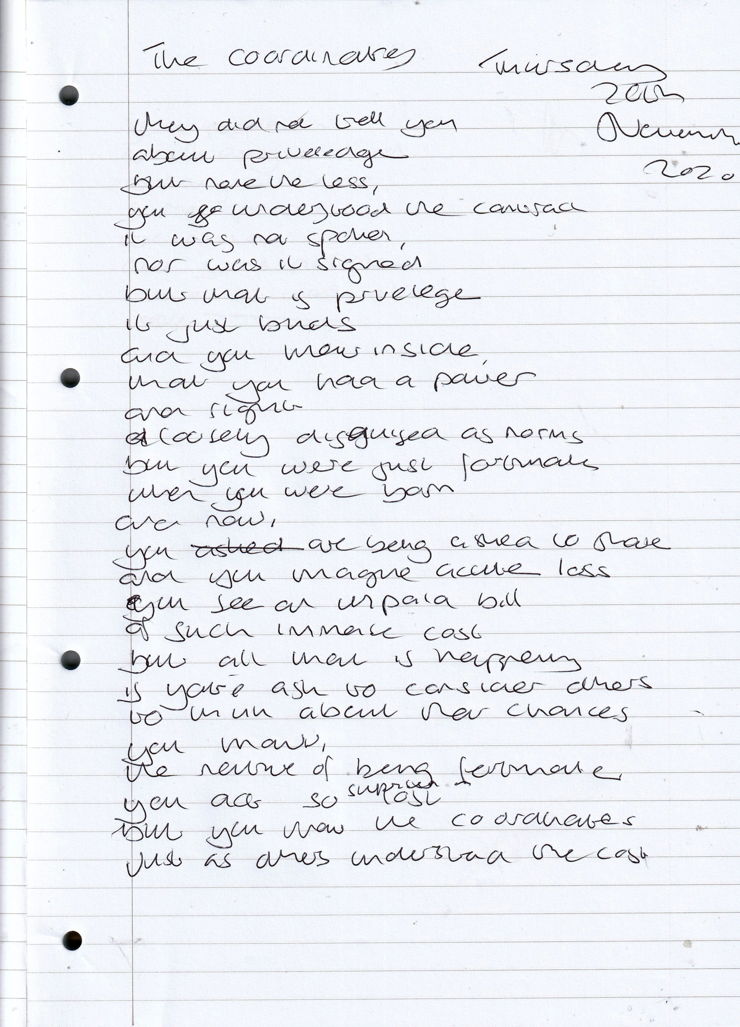 The Coordinates – Written Thursday 26th November 2020 (Aged 45)