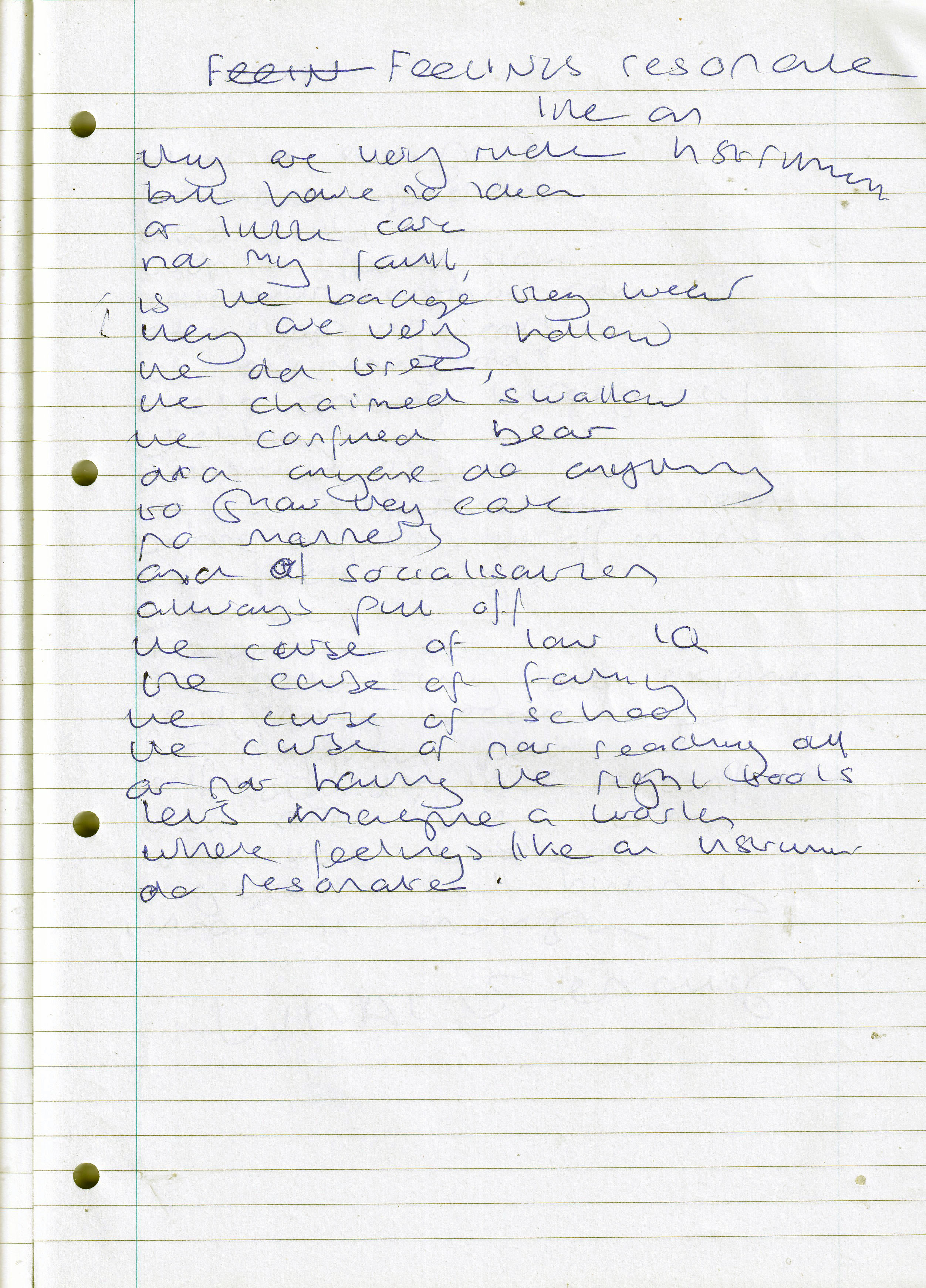 Feelings Resonate Like an Instrument – Written April 2014 (Aged 39)