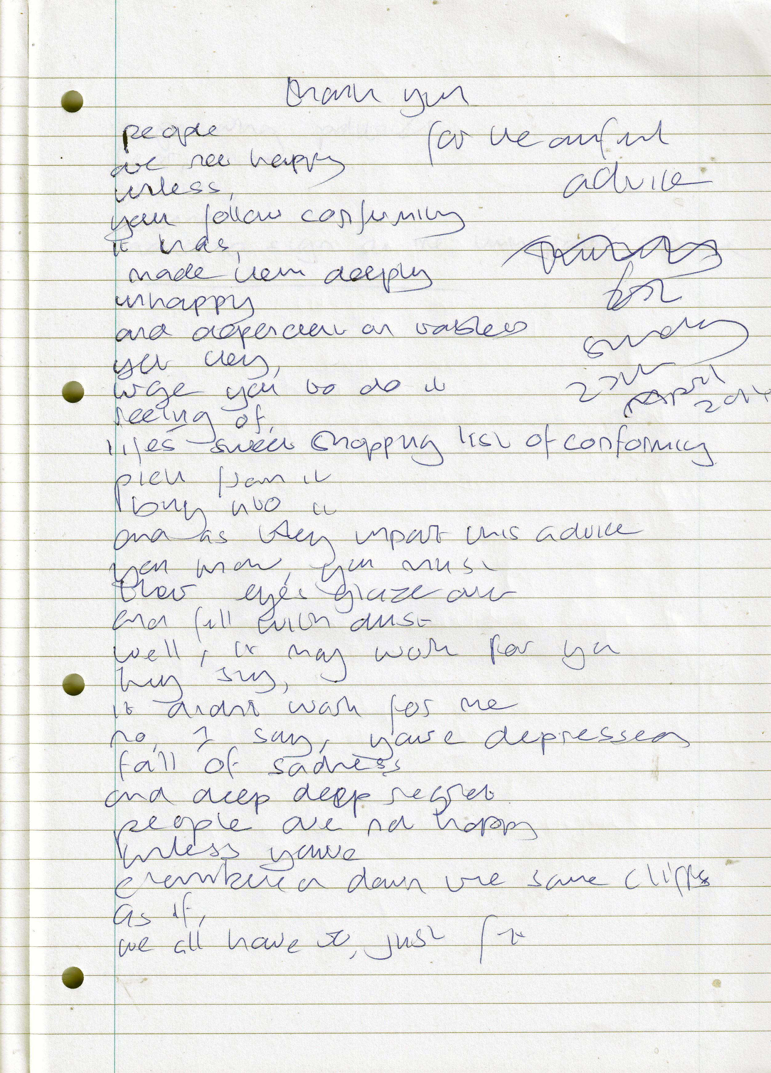 Thank You For the Awful Advice – Written Sunday 27th April 2014 (Aged 39)