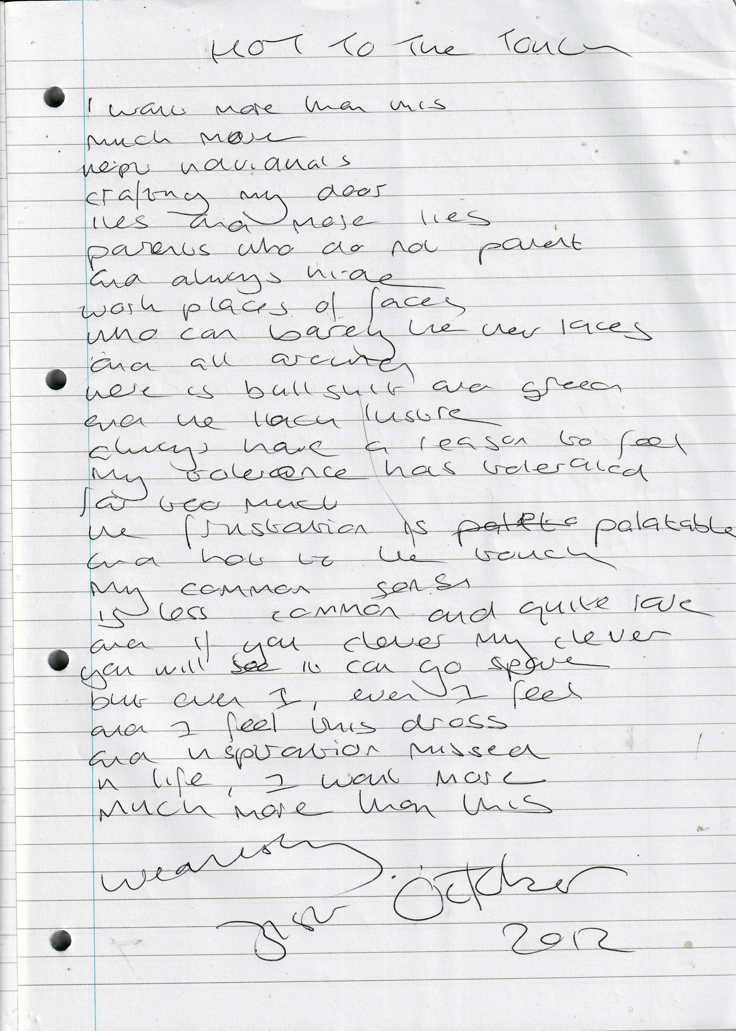 Hot to the Touch – Written Wednesday 31st October 2012 (Aged 37)