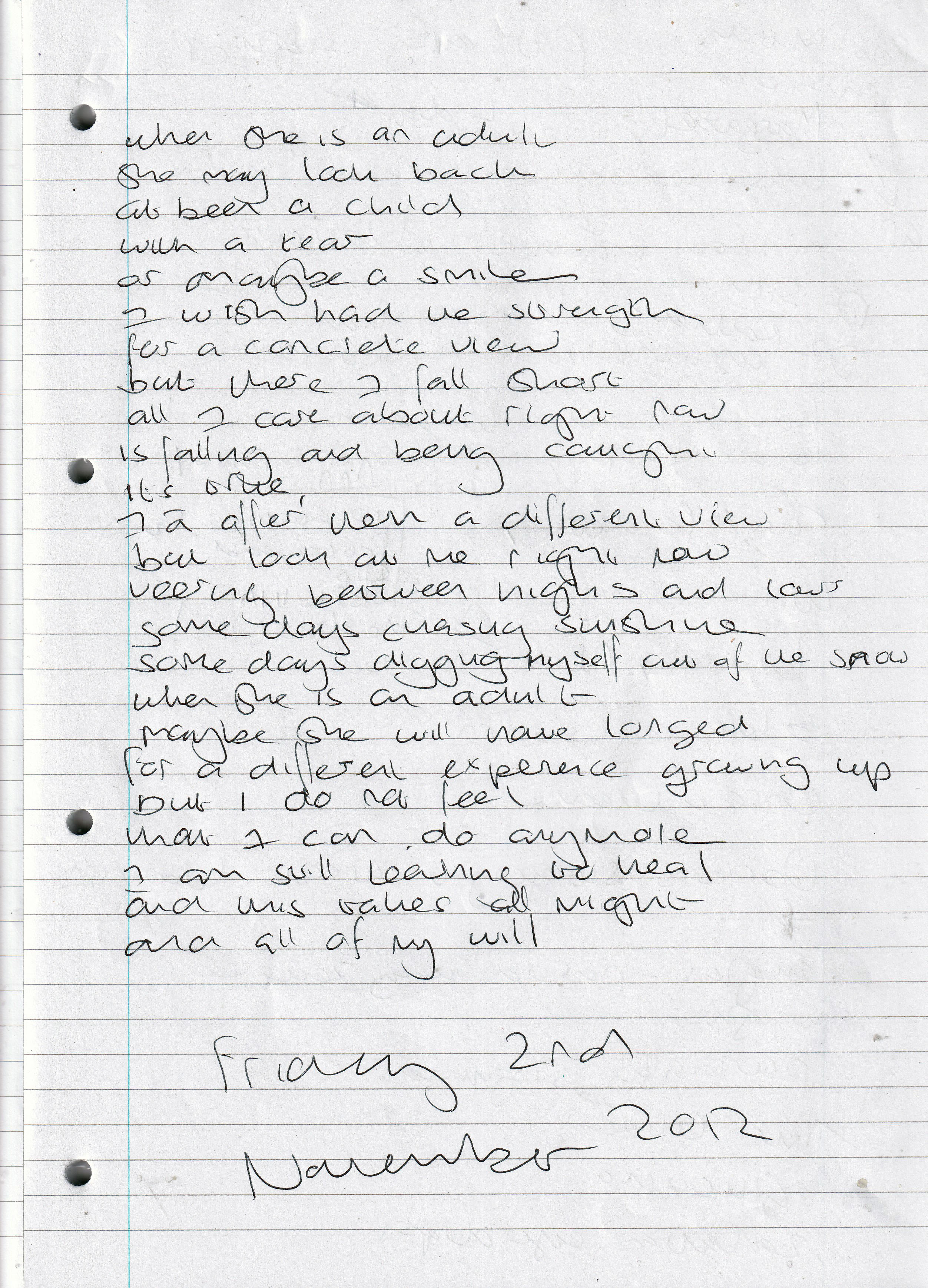 When She is an Adult – Written Friday 2nd November 2012 (Aged 37)