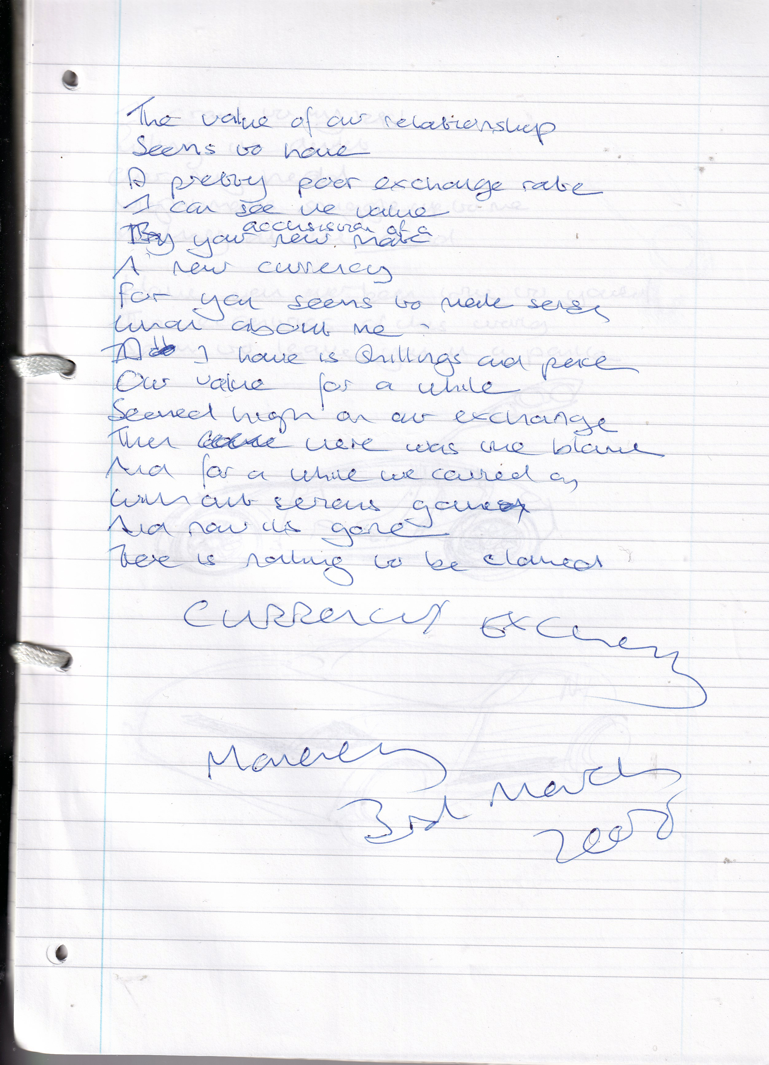 Currency Exchange – Written Monday 3rd March 2008 (Aged 33)