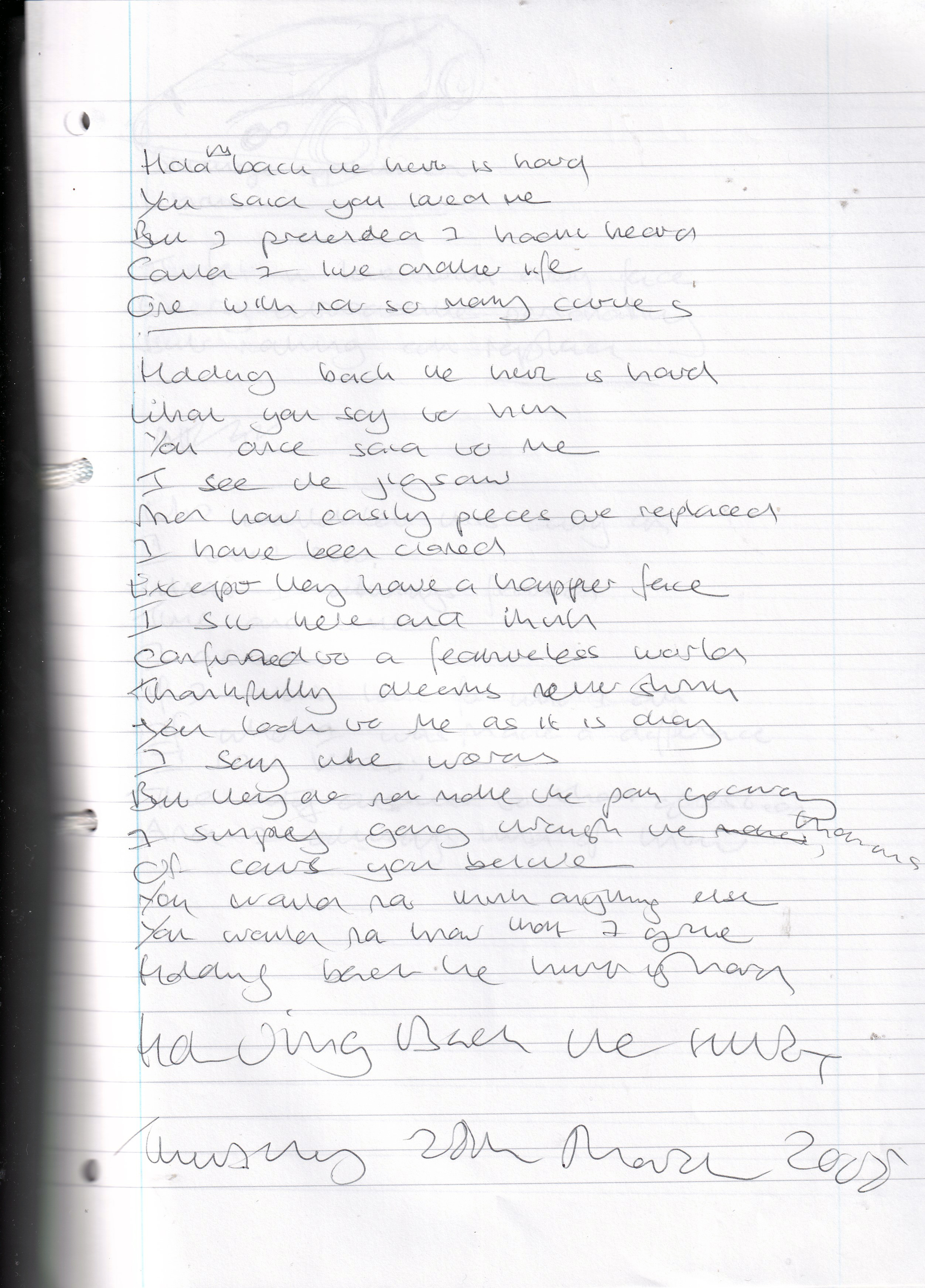 Holding Back the Hurt – Written Thursday 28th February 2008 (Aged 33)