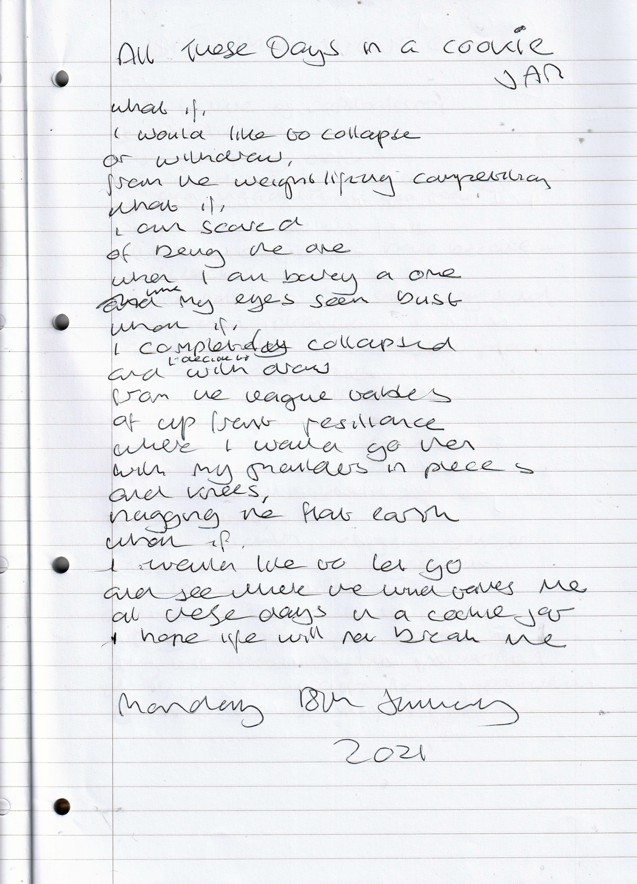 All These Days in a Cookie Jar – Written Monday 18th January 2021 (Aged 45)