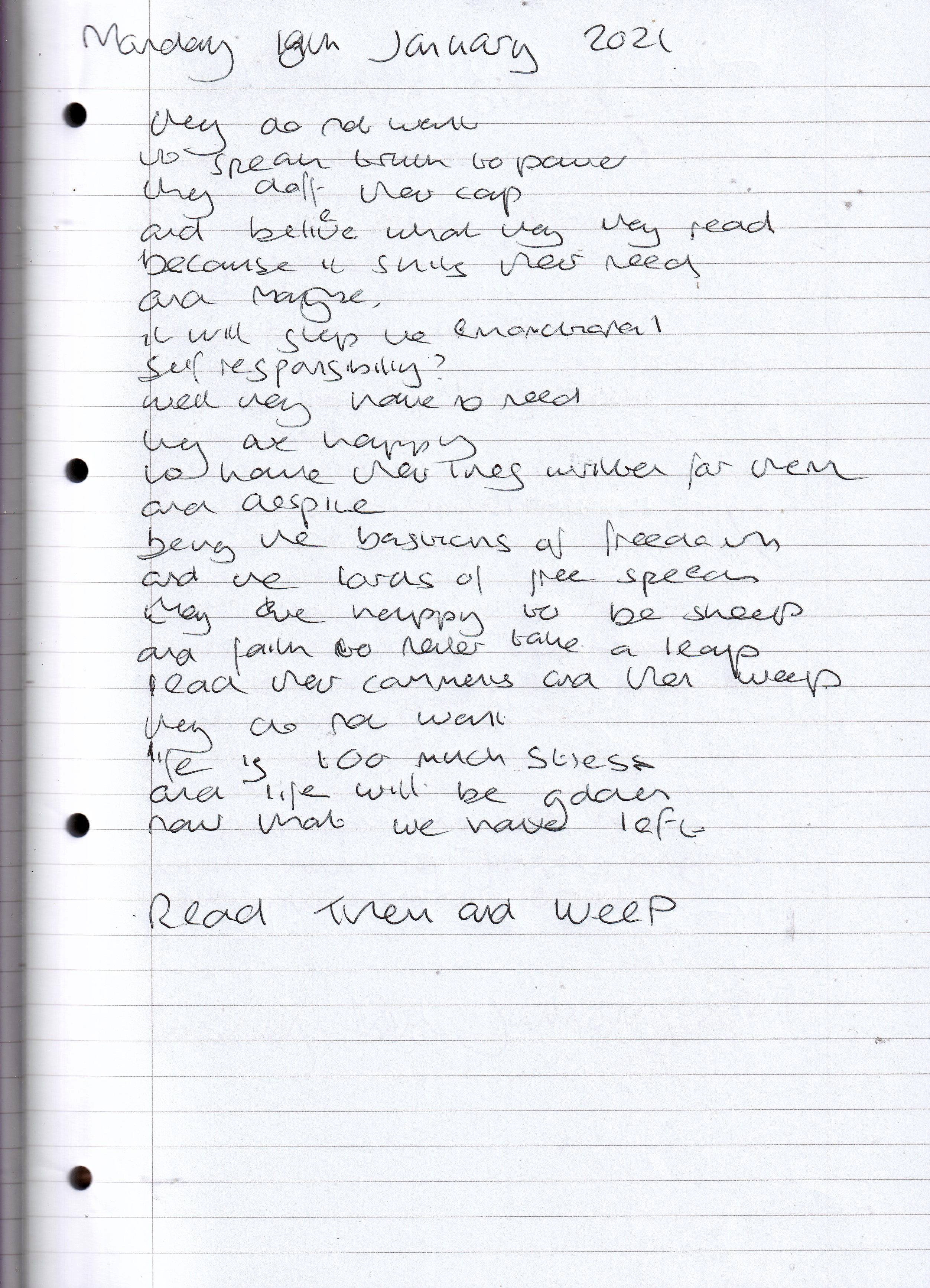 Behave like Deluded Sheep – Written Monday 18th January 2021 (Aged 45)