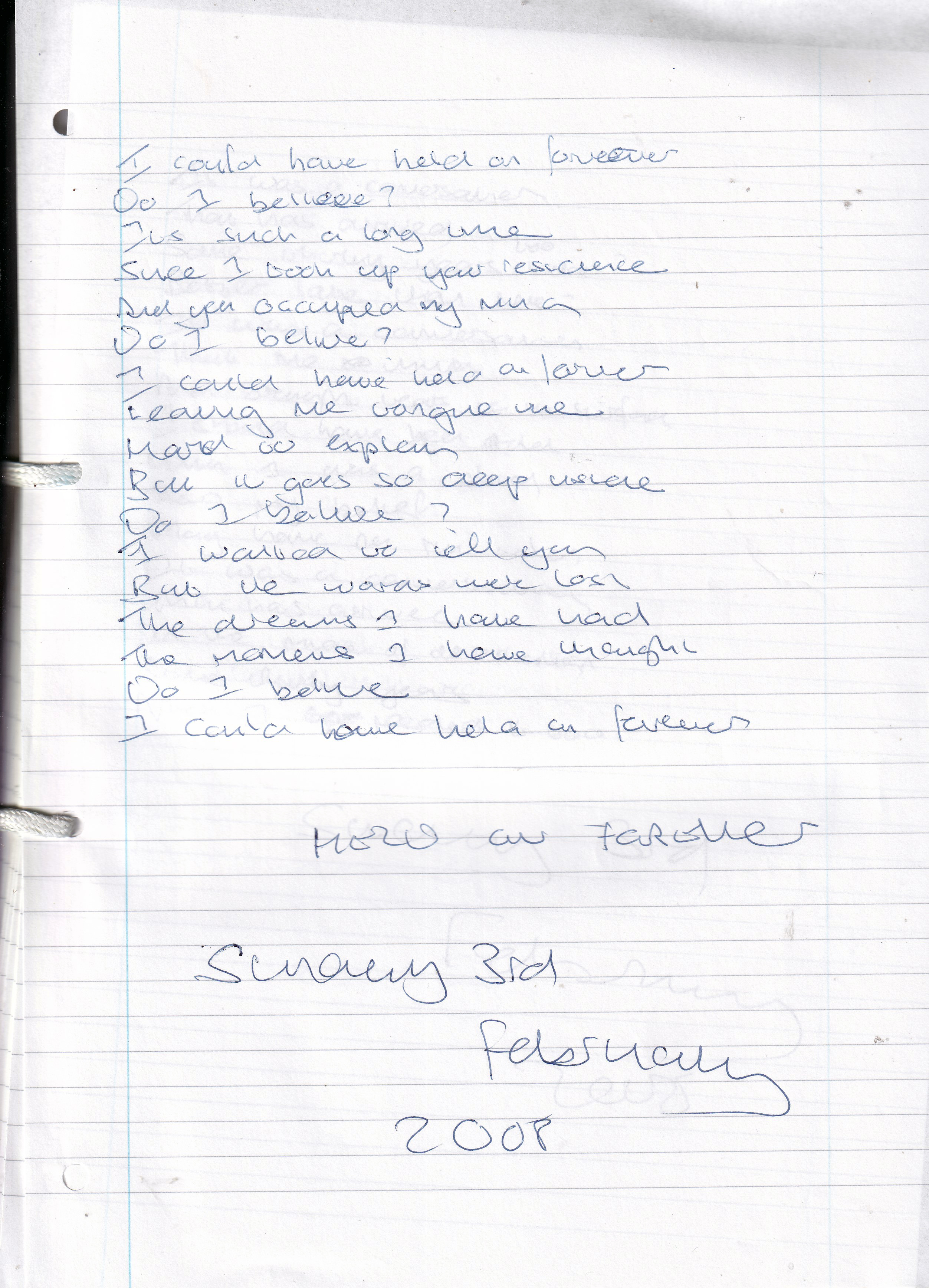 Hold On Forever – Written Sunday 3rd February 2008 (Aged 32)