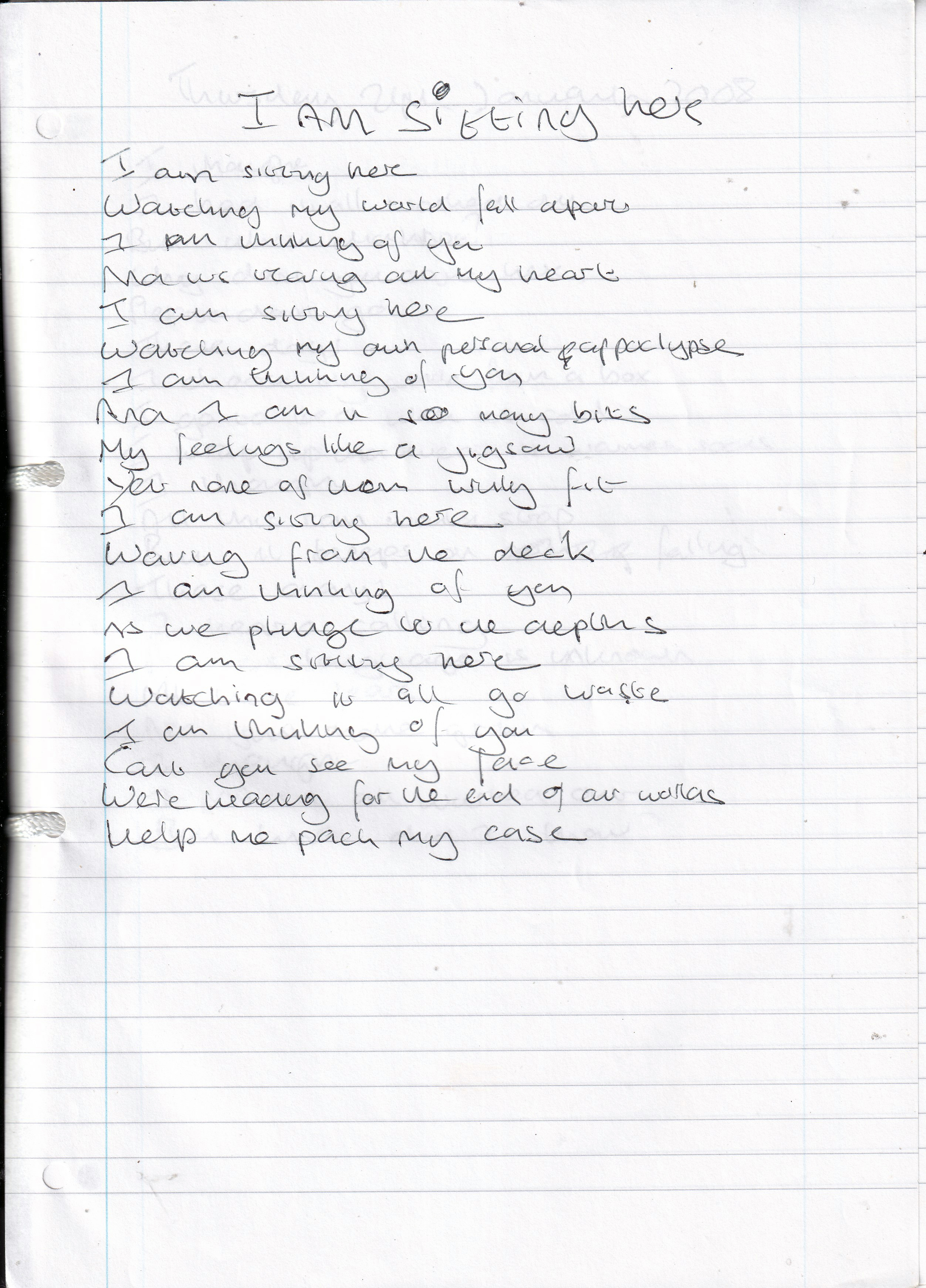 I Am Sitting Here – Written January 2008 (Aged 32)