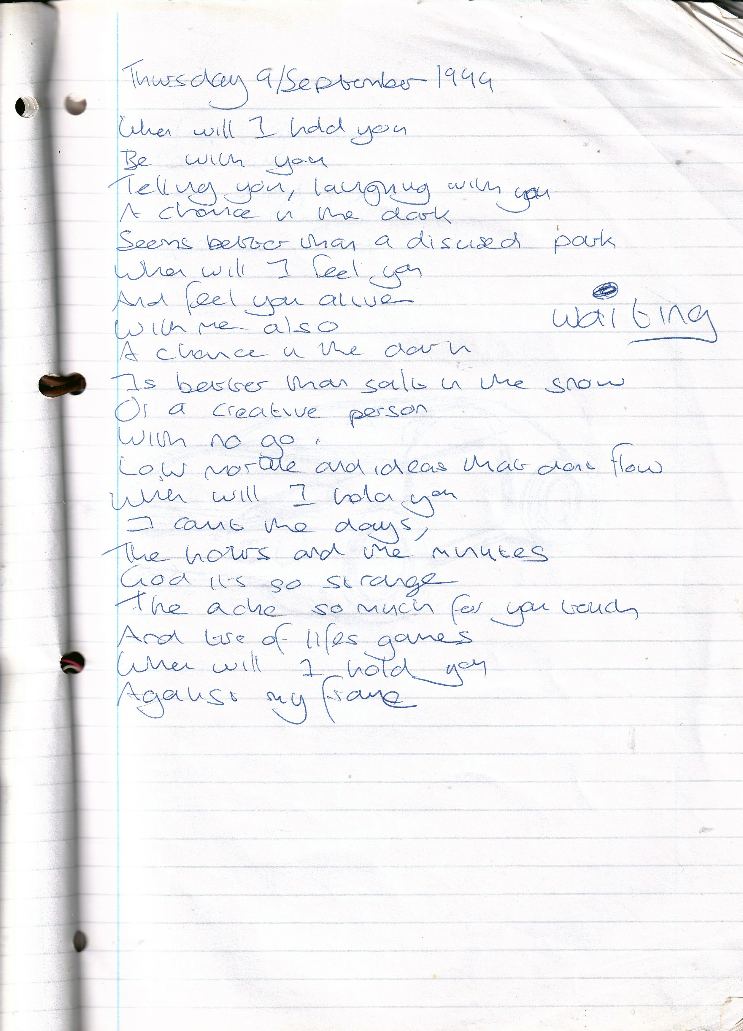 Waiting – Written Thursday 9th September 1999 (Aged 24)