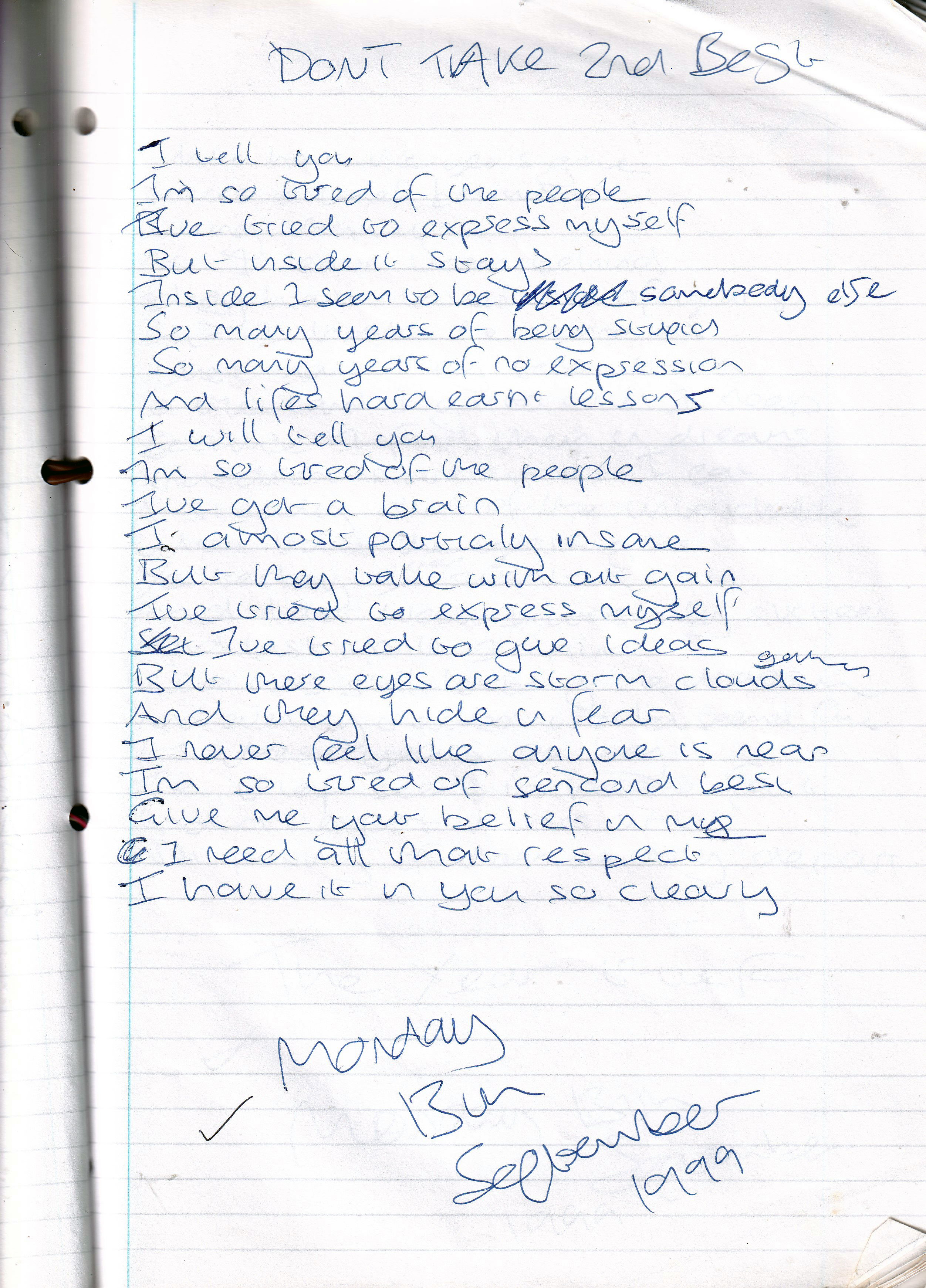 Do Not Take Second Best – Written Monday 13th September 1999 (Aged 24)