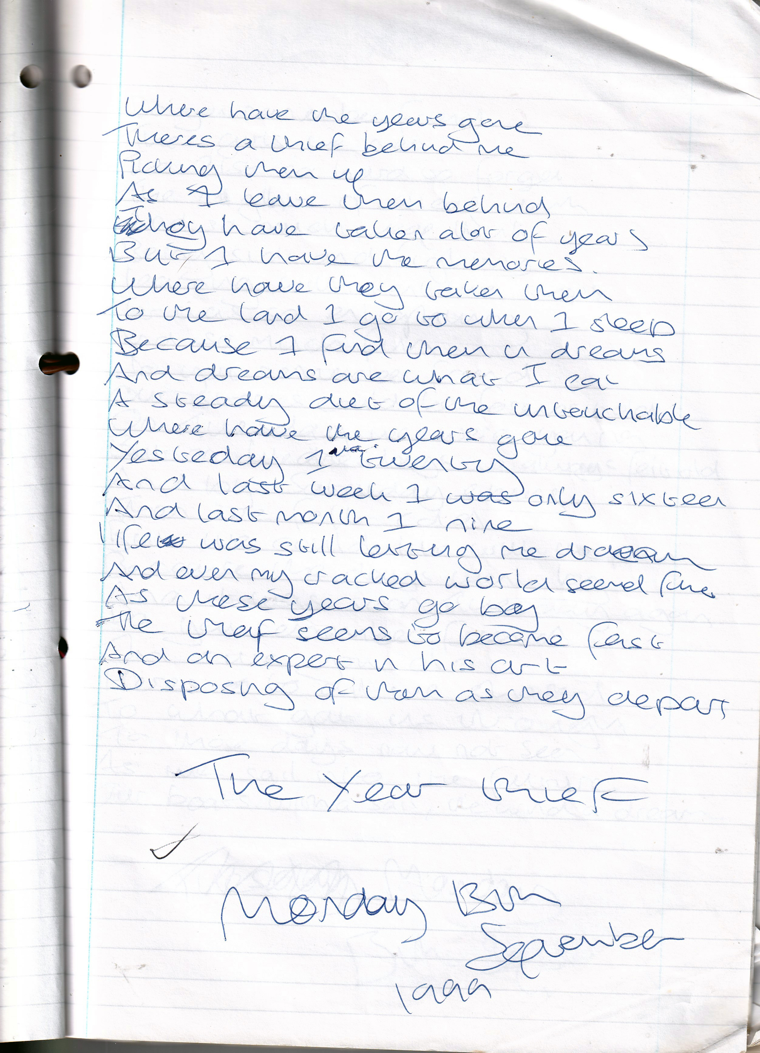 The Year Thief – Written Monday 13th September 1999 (Aged 24)