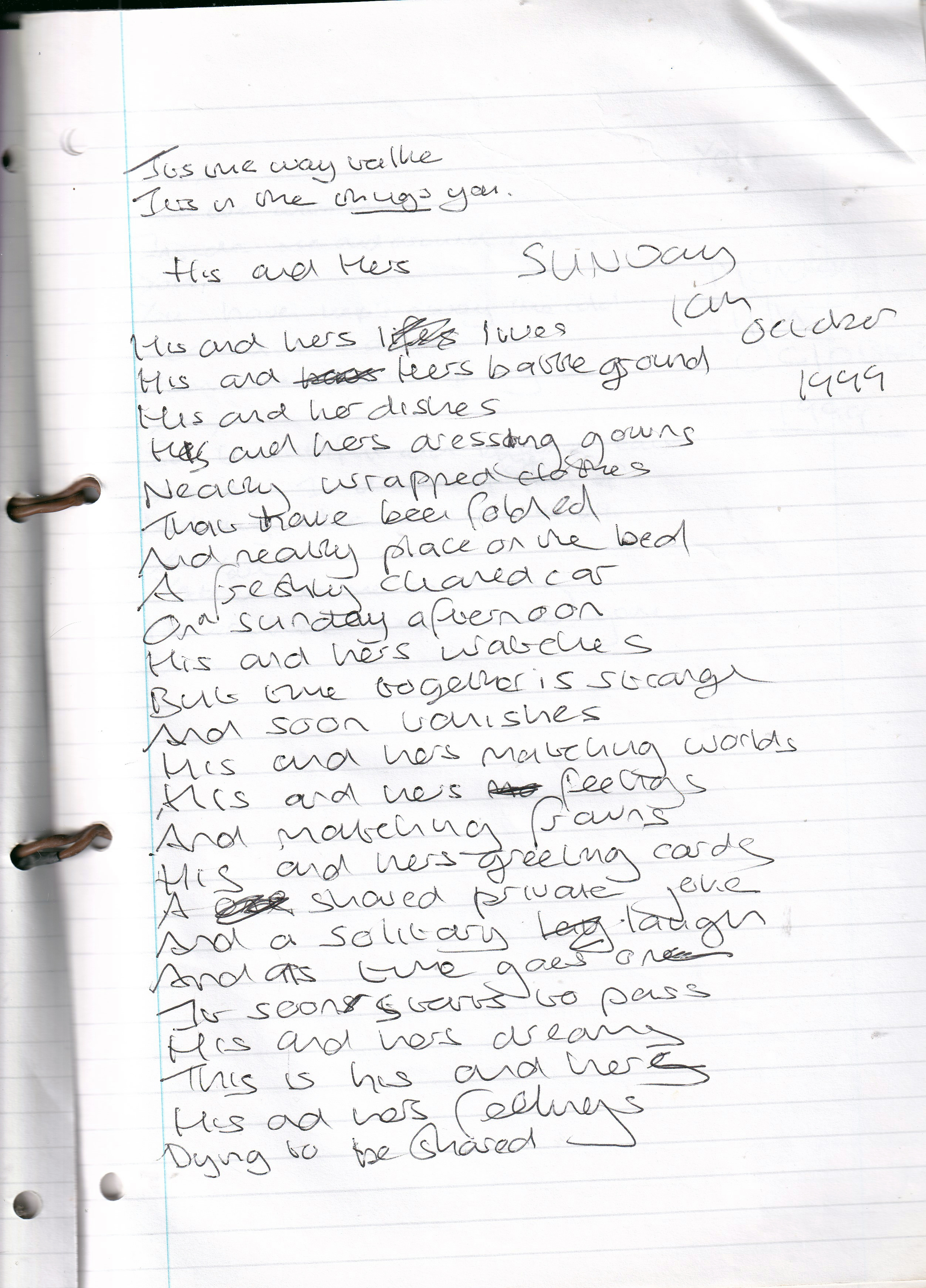 His and Hers – Written Sunday 10th October 1999 (Aged 24)