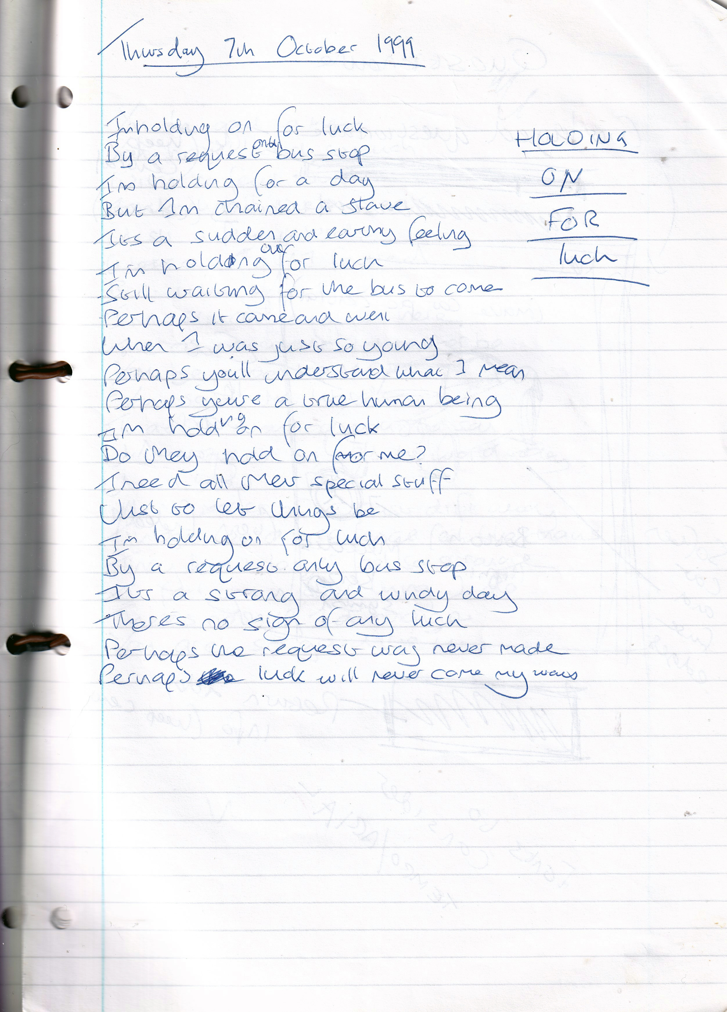 Holding on For Luck – Written Thursday 7th October 1999 (Aged 24)