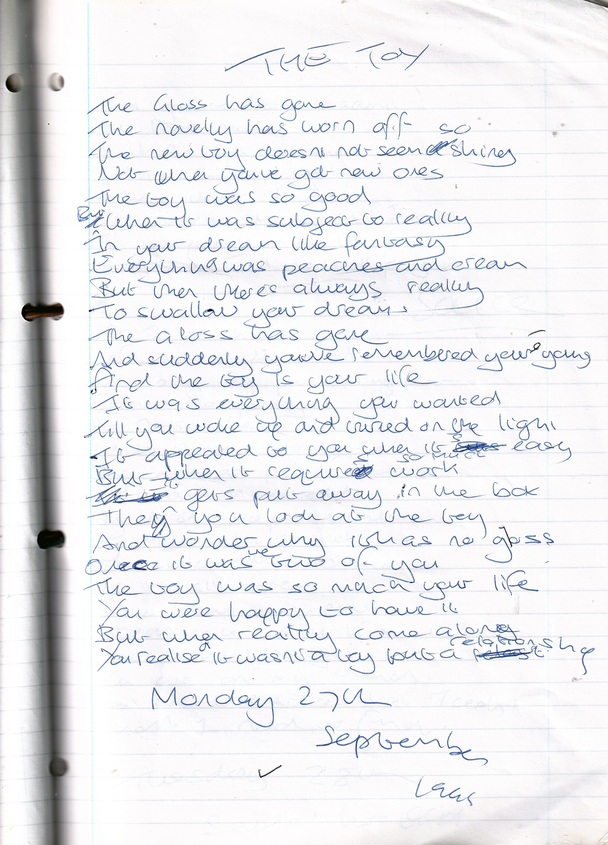 The Toy – Written Monday 27th September 1999 (Aged 24)