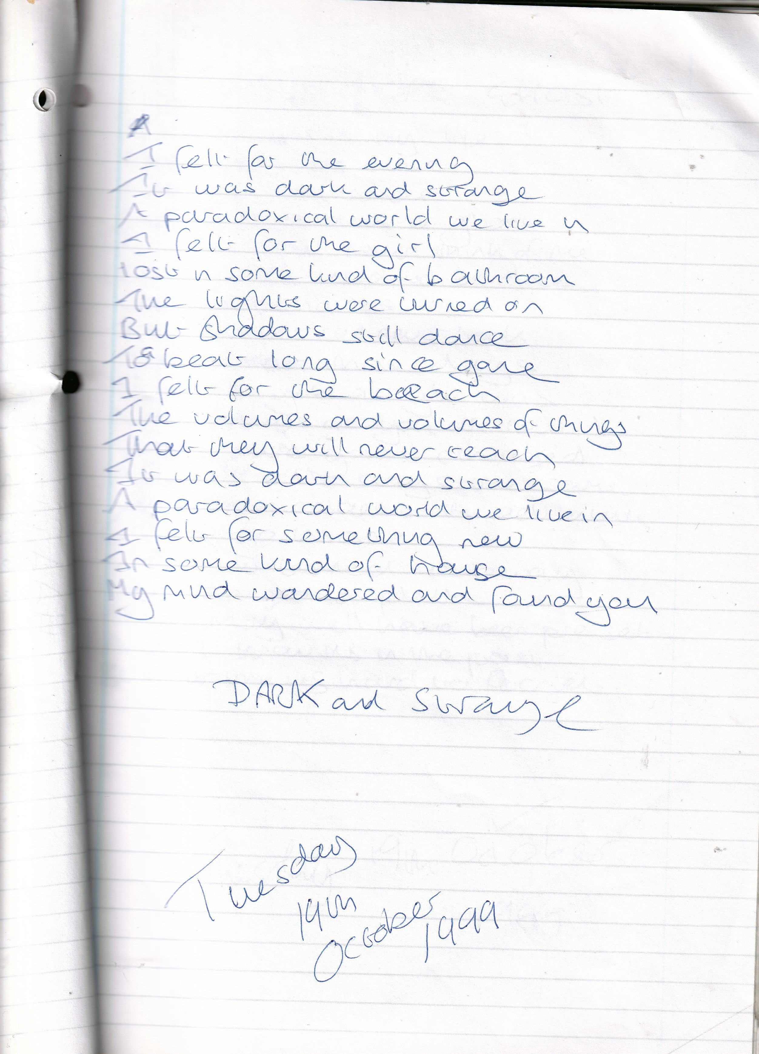 Dark and Strange – Written Tuesday 19th October 1999 (Aged 24)