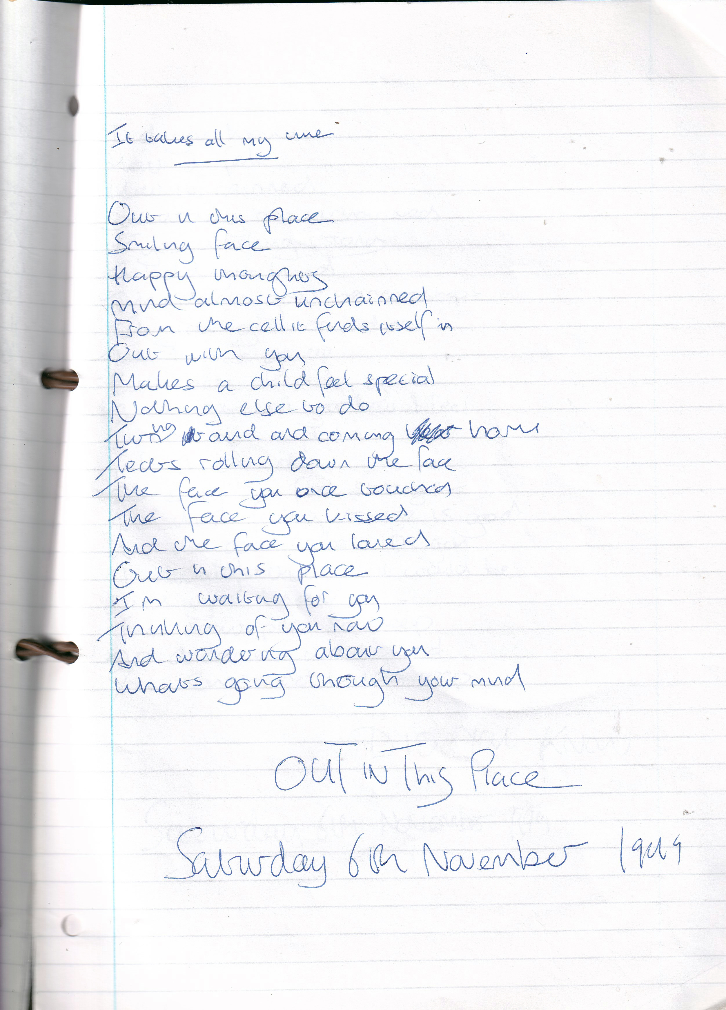 Out In This Place – Written Saturday 6th November 1999 (Aged 24)