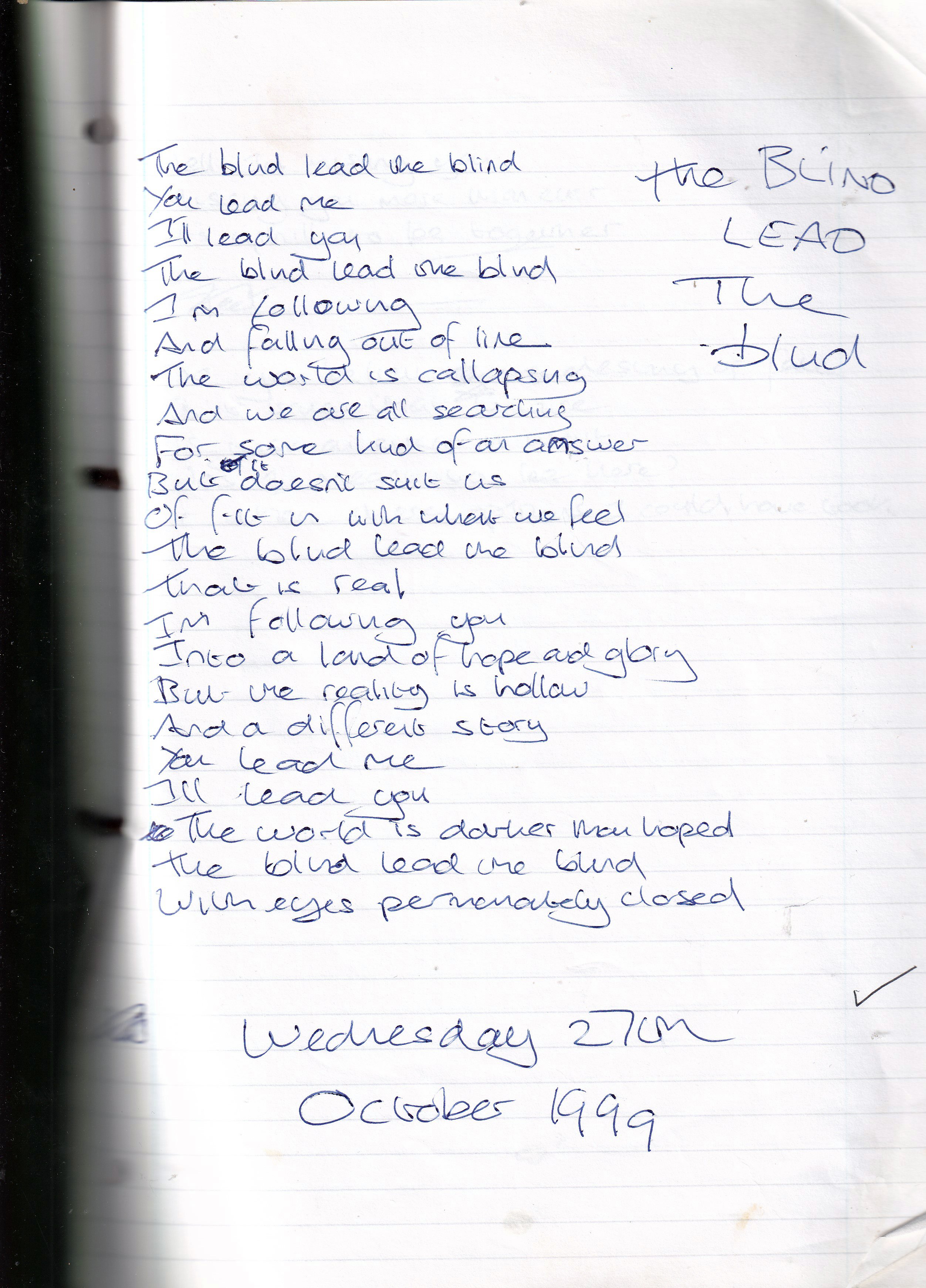 The Blind Lead The Blind – Written Wednesday 27th October 1999 (Aged 24)