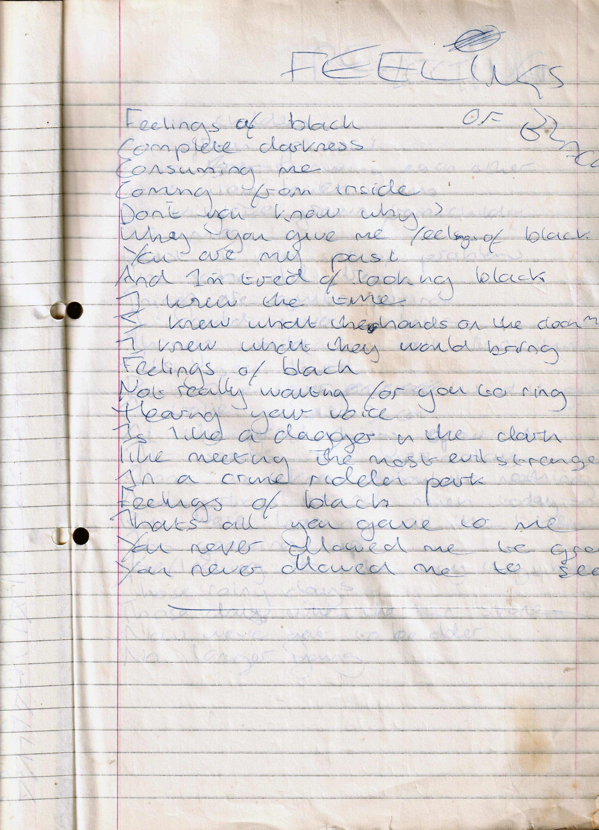 Feelings of Black – Most Likely Written Sometime Between September and November 1994 (Aged 19)