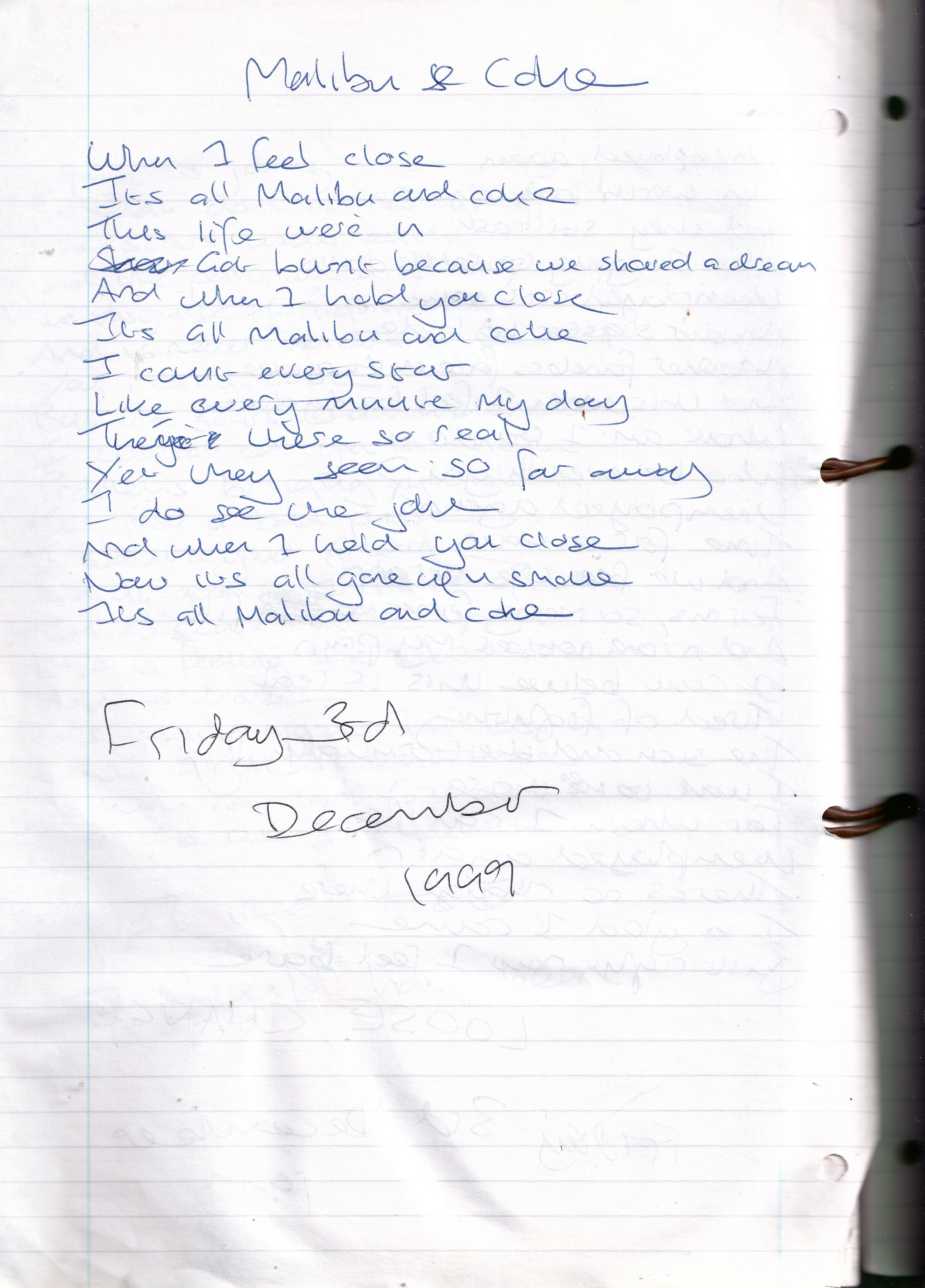 Malibu and Coke – Written Friday 3rd December 1999 (Aged 24)