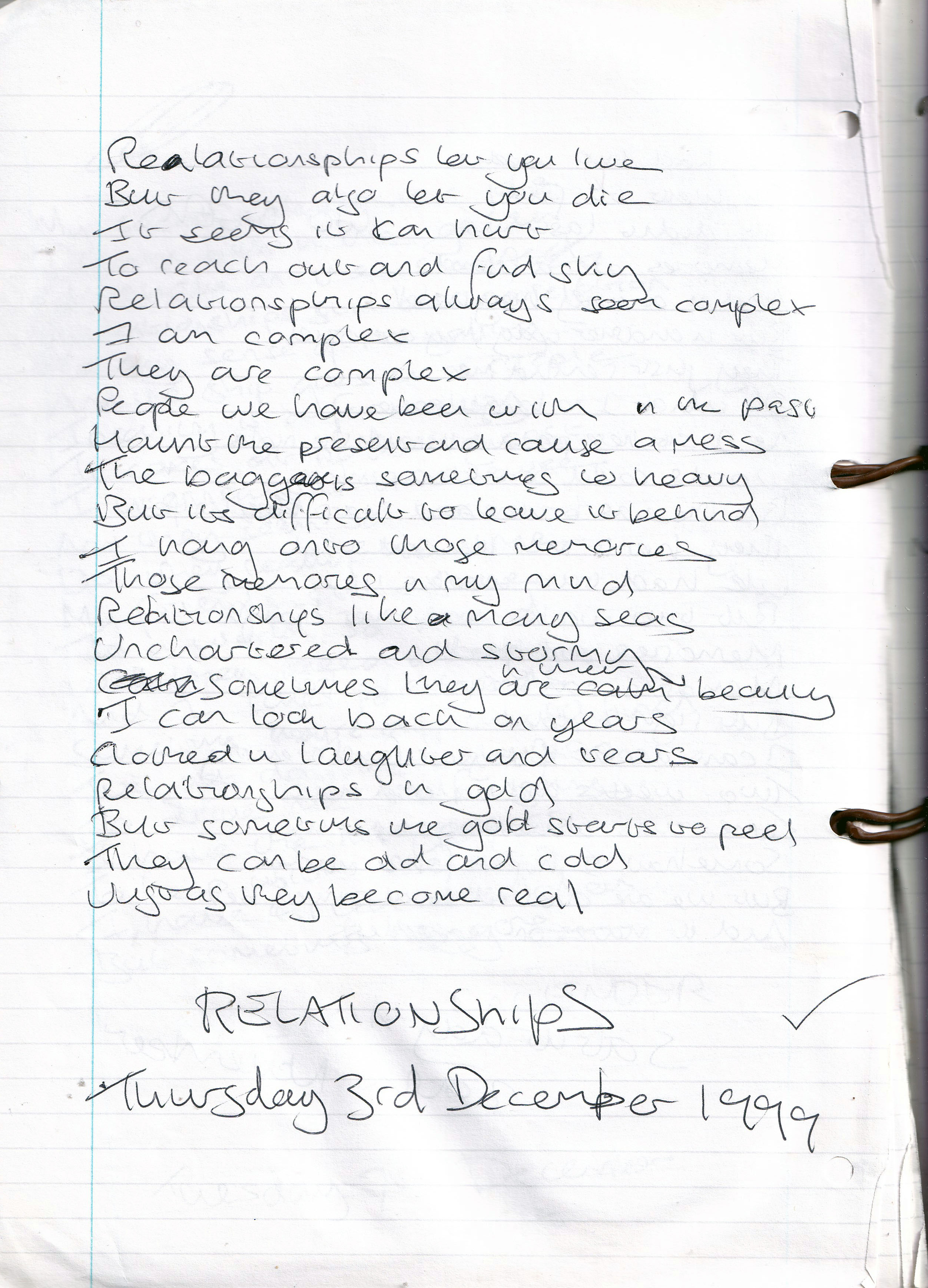 Relationships – Written Thursday 3rd December 1999 (Aged 24)