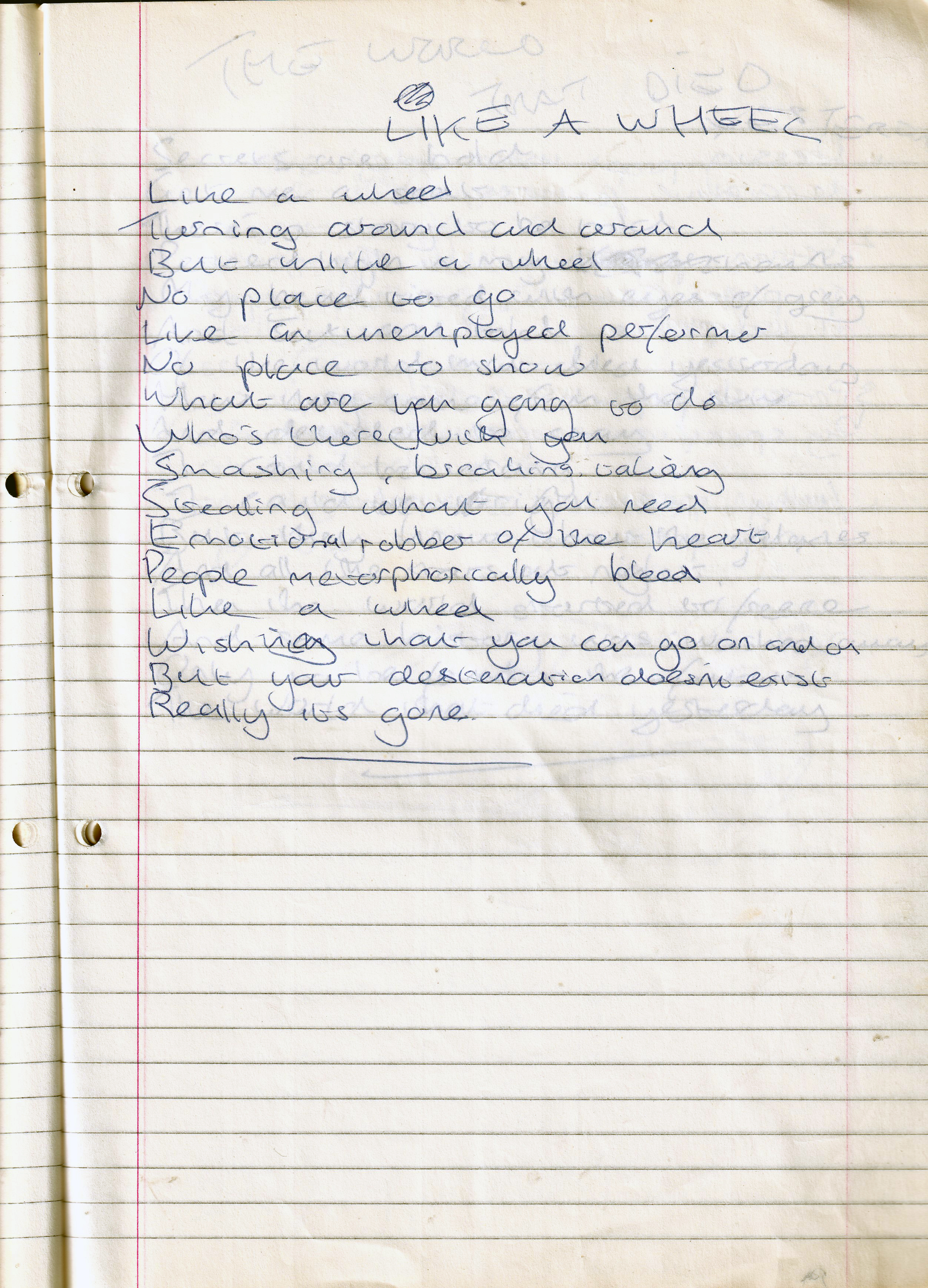 Like a Wheel – Written Between Tuesday 15th February 1994 and November 1994 (Aged 18/19)