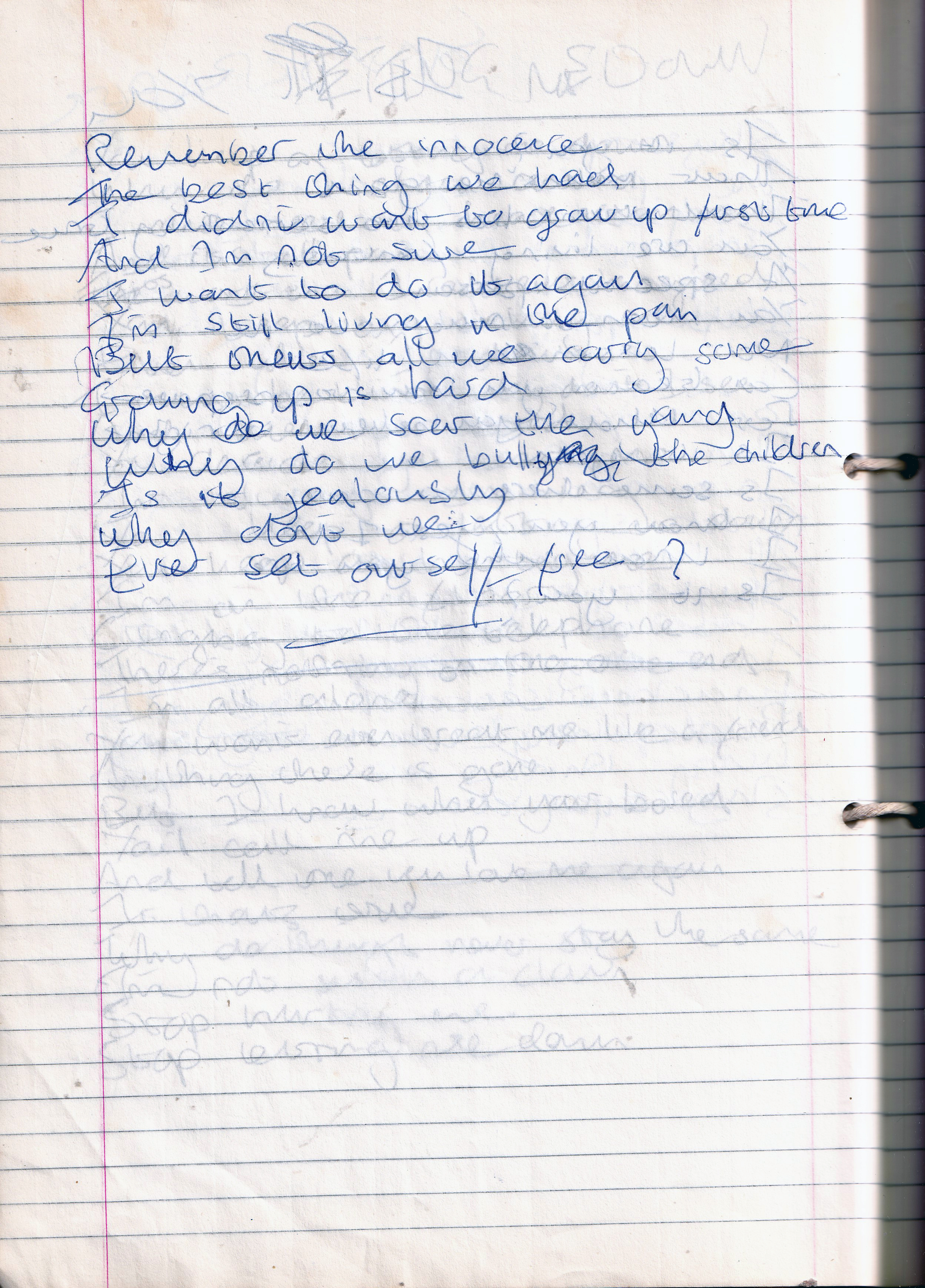 Remember The Innocence – Written Between Tuesday 15th February 1994 and November 1994 (Aged 18/19)