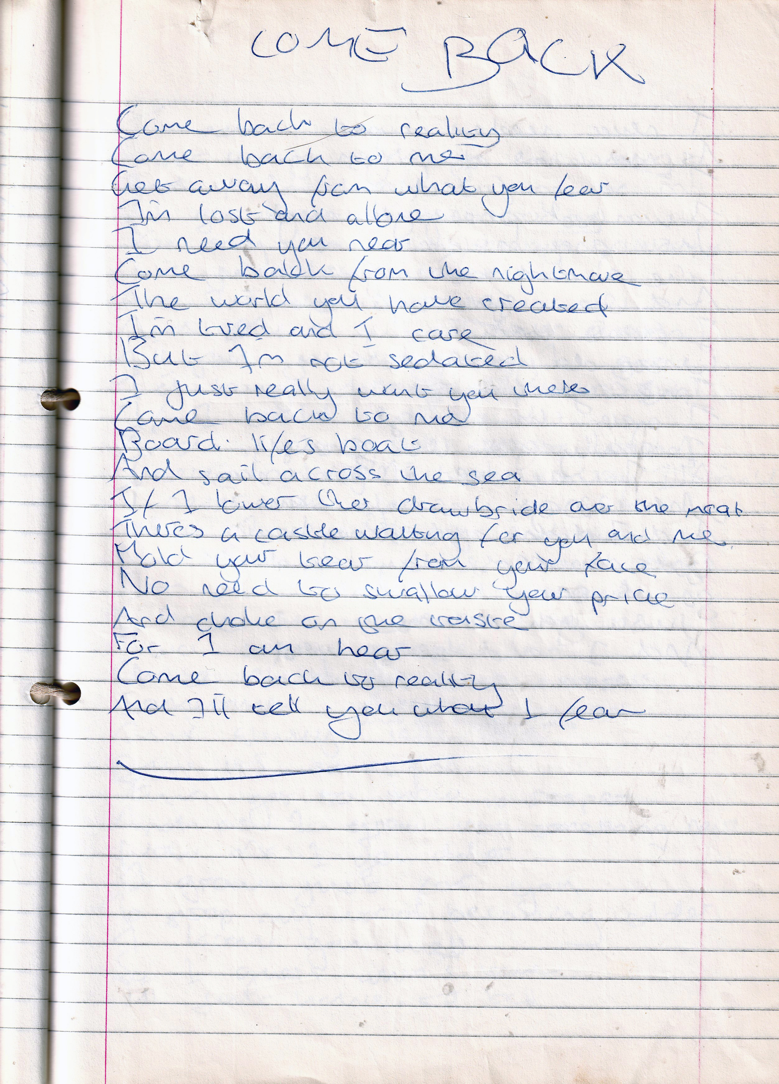 Come Back – Written Between Tuesday 15th February 1994 and November 1994 (Aged 18/19)