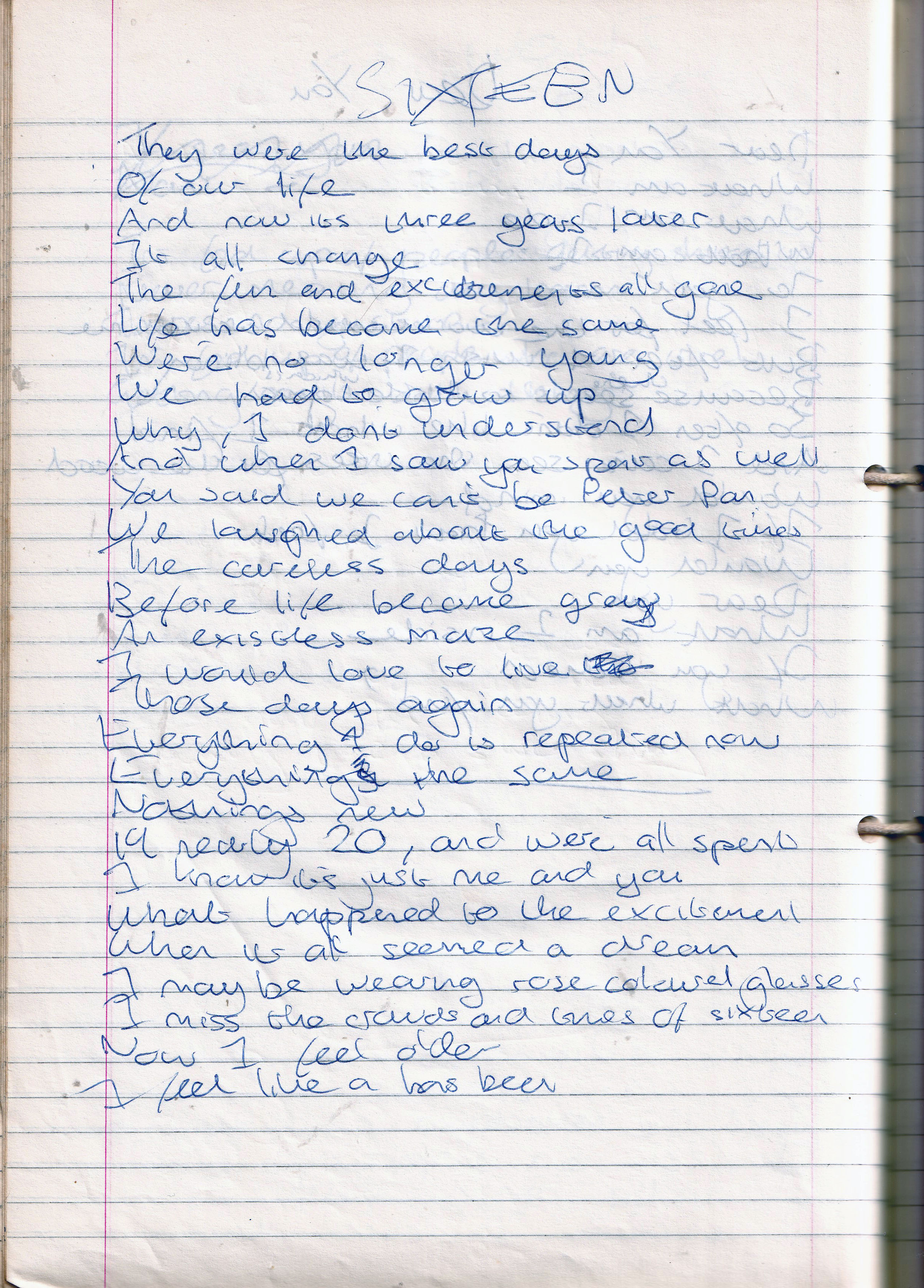Sixteen – Written Between Tuesday 15th February 1994 and October 1994 (Aged 18/19)