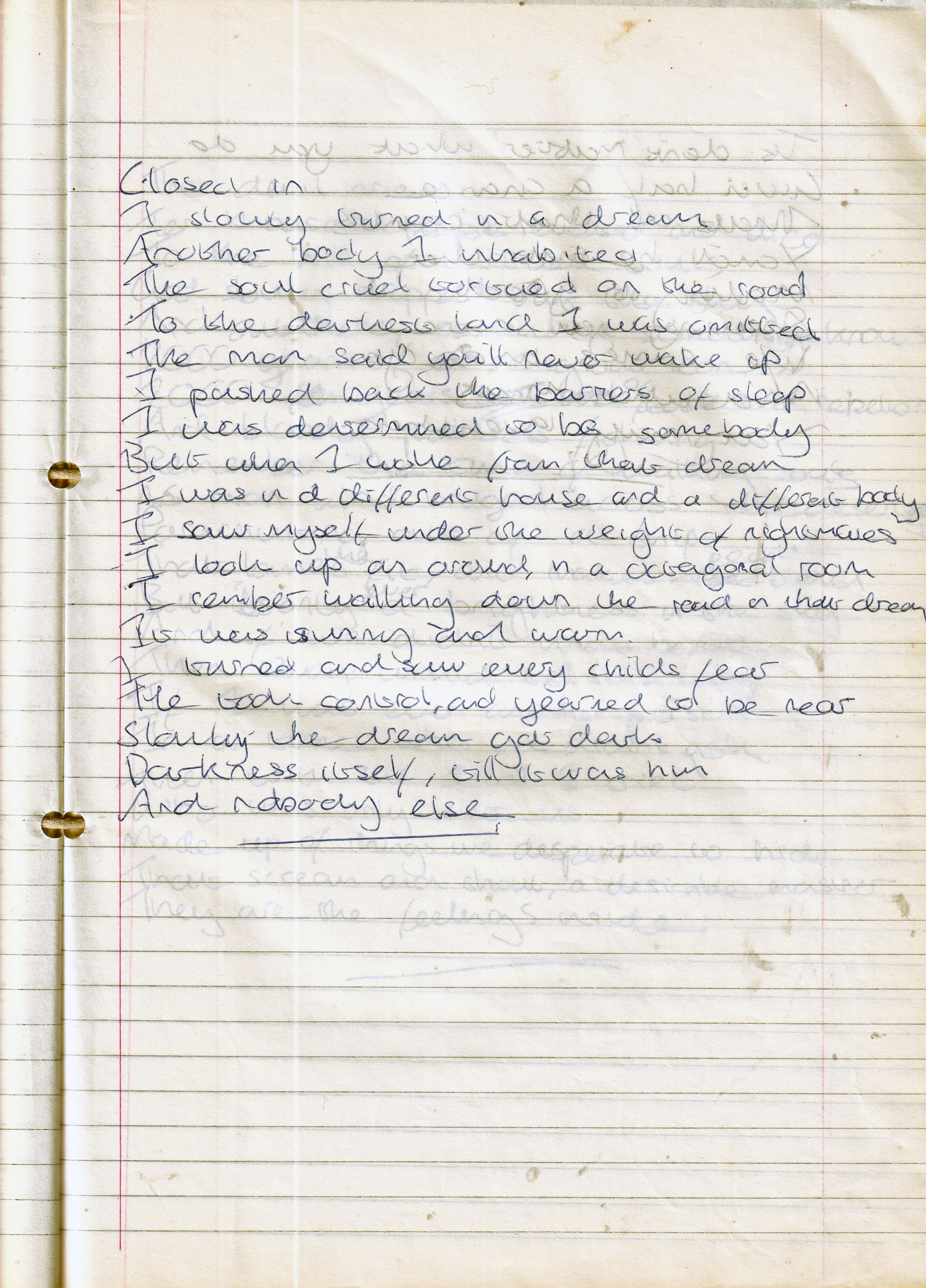 Sleep – Written Between Tuesday 15th February 1994 and October 1994 (Aged 18/19)