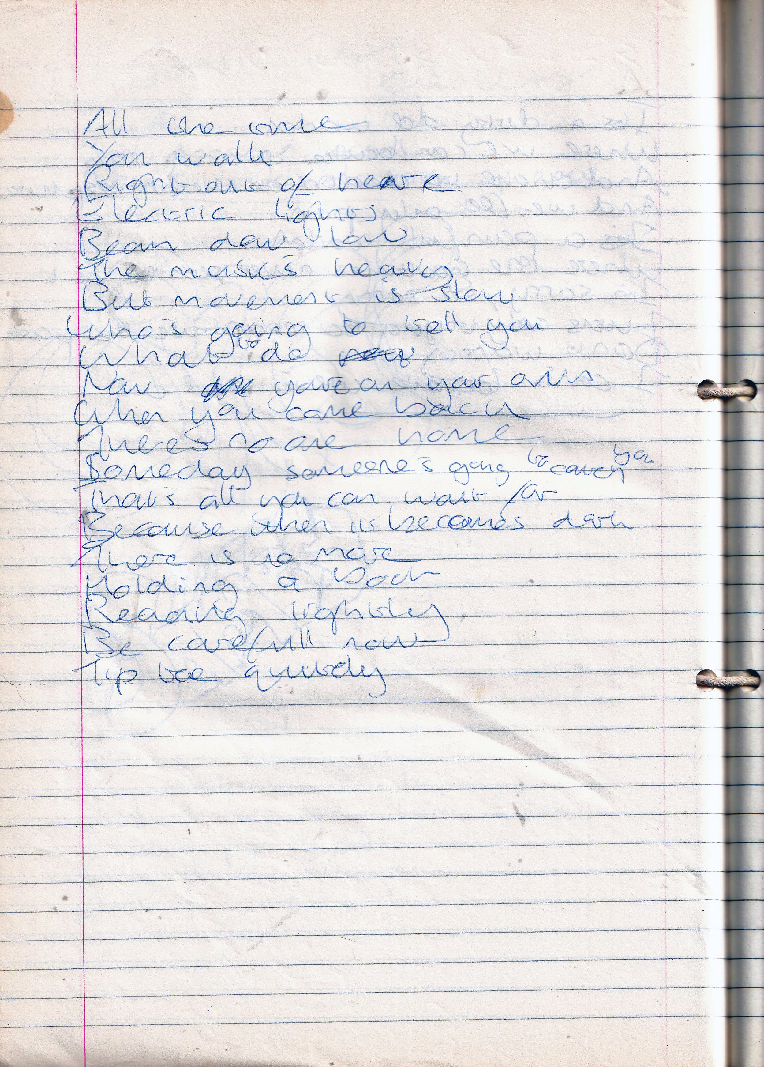 Tip Toe Quietly – Written Between Tuesday 15th February 1994 and October 1994 (Aged 18/19)