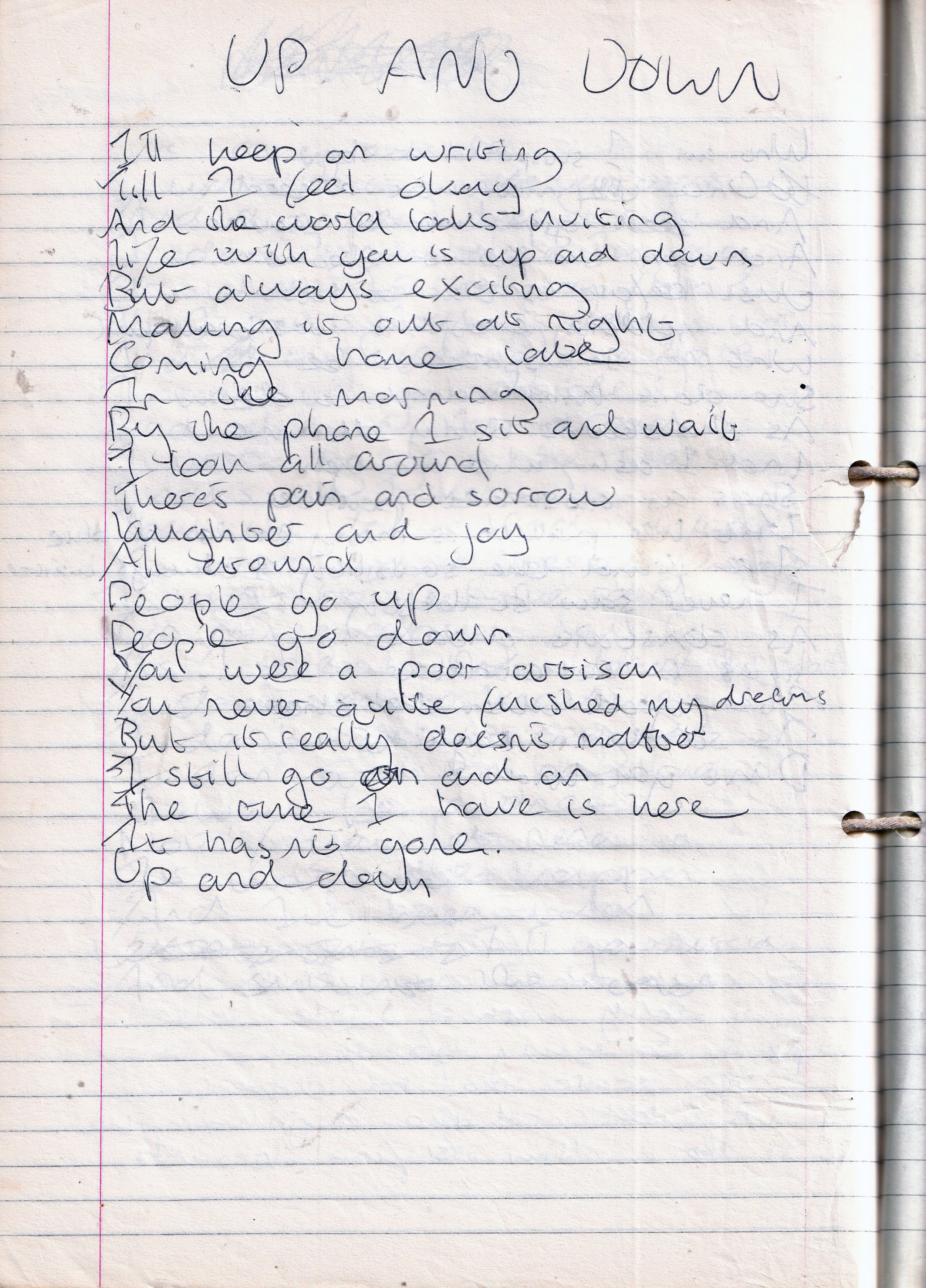 Up and Down – Written Between Tuesday 15th February 1994 and October 1994 (Aged 18/19)