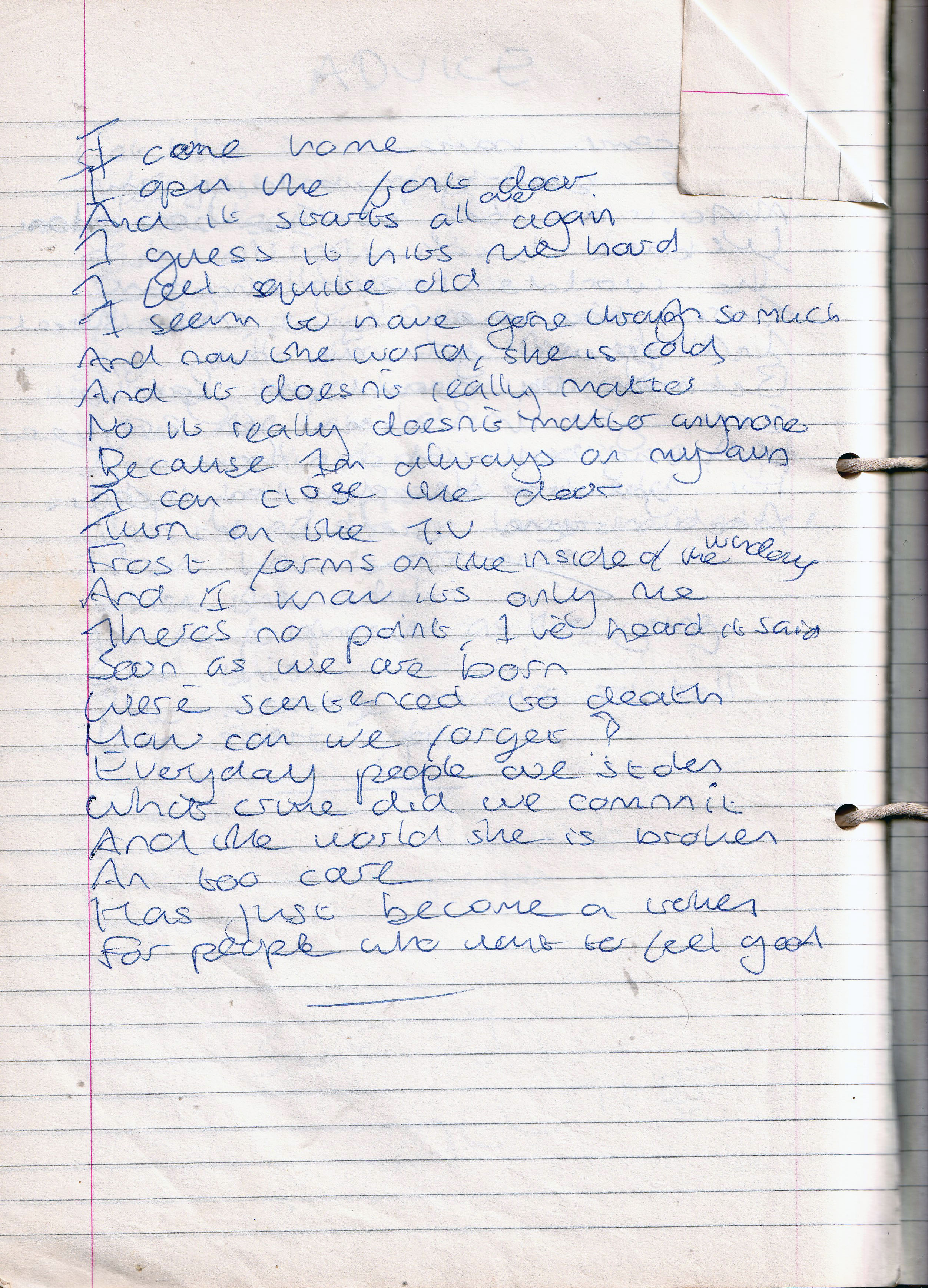 I Come Home – Written Tuesday 15th February 1994 and October 1994 (Aged 18/19)
