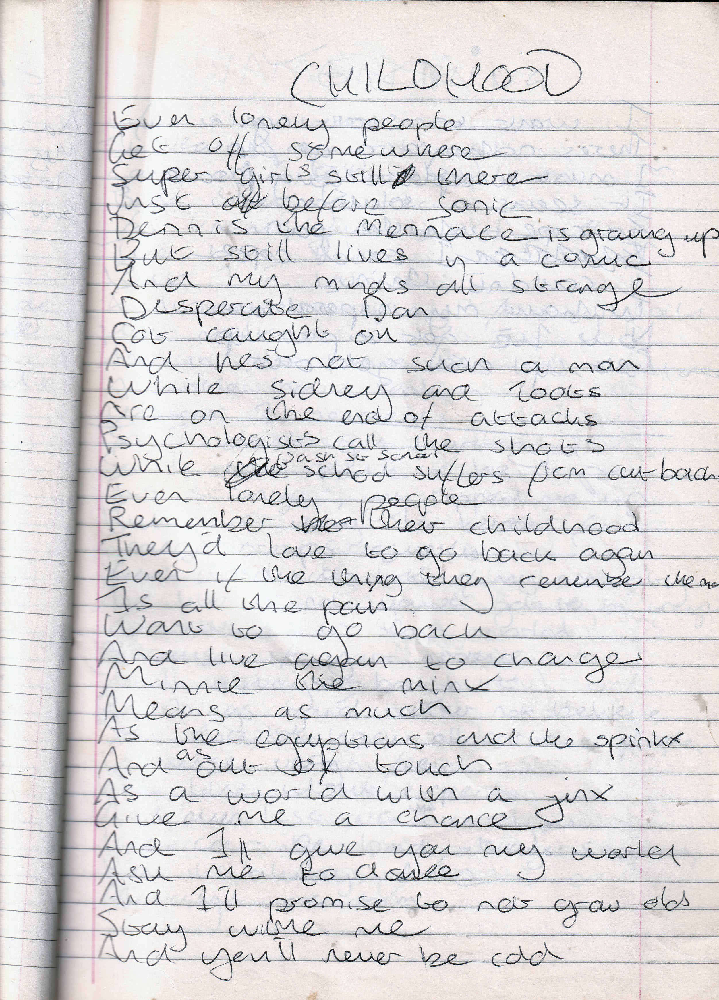 Childhood – Written Tuesday 15th February 1994 and October 1994 (Aged 18/19)
