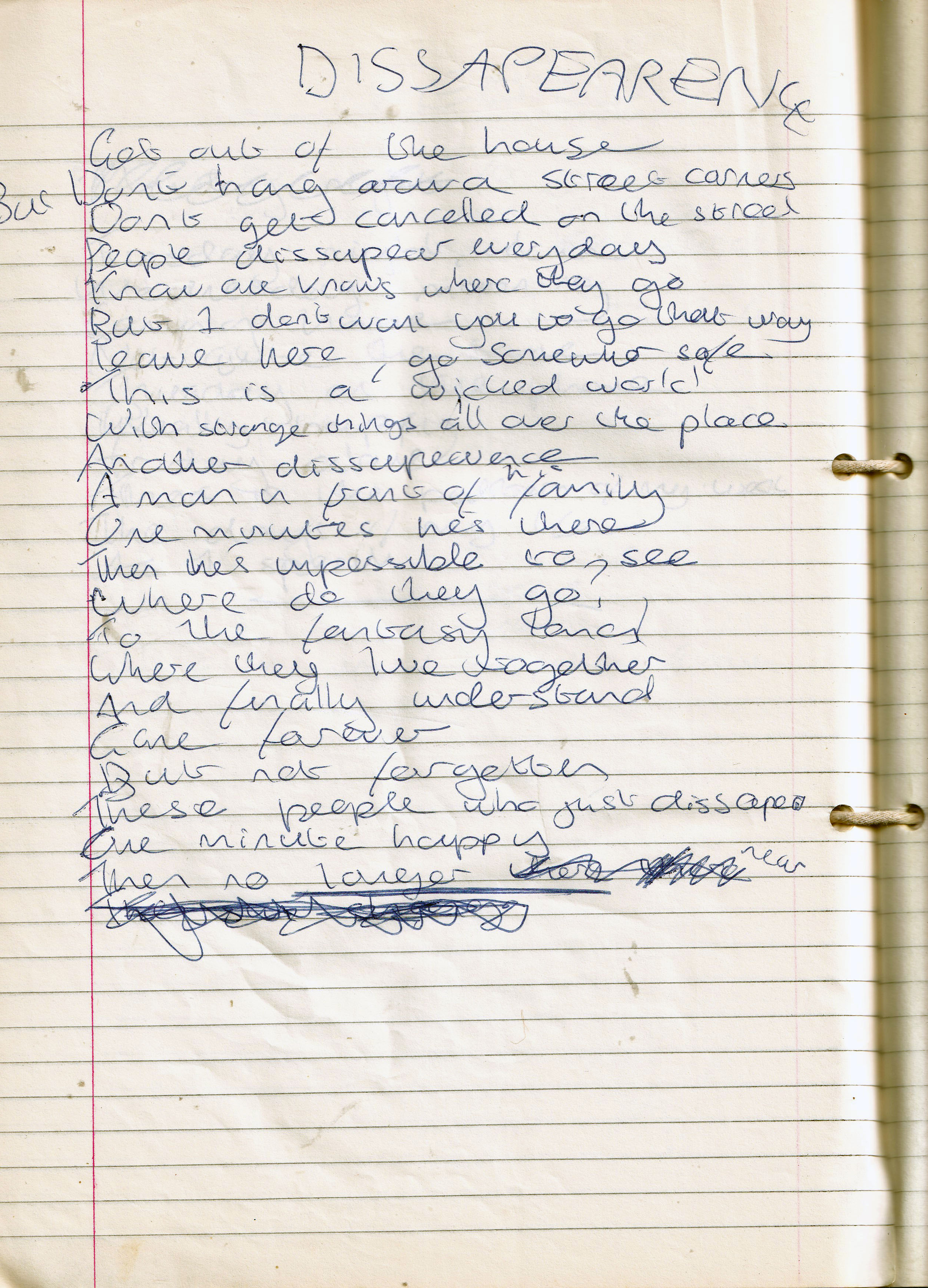 Disappearance – Written Tuesday 15th February 1994 and October 1994 (Aged 18/19)