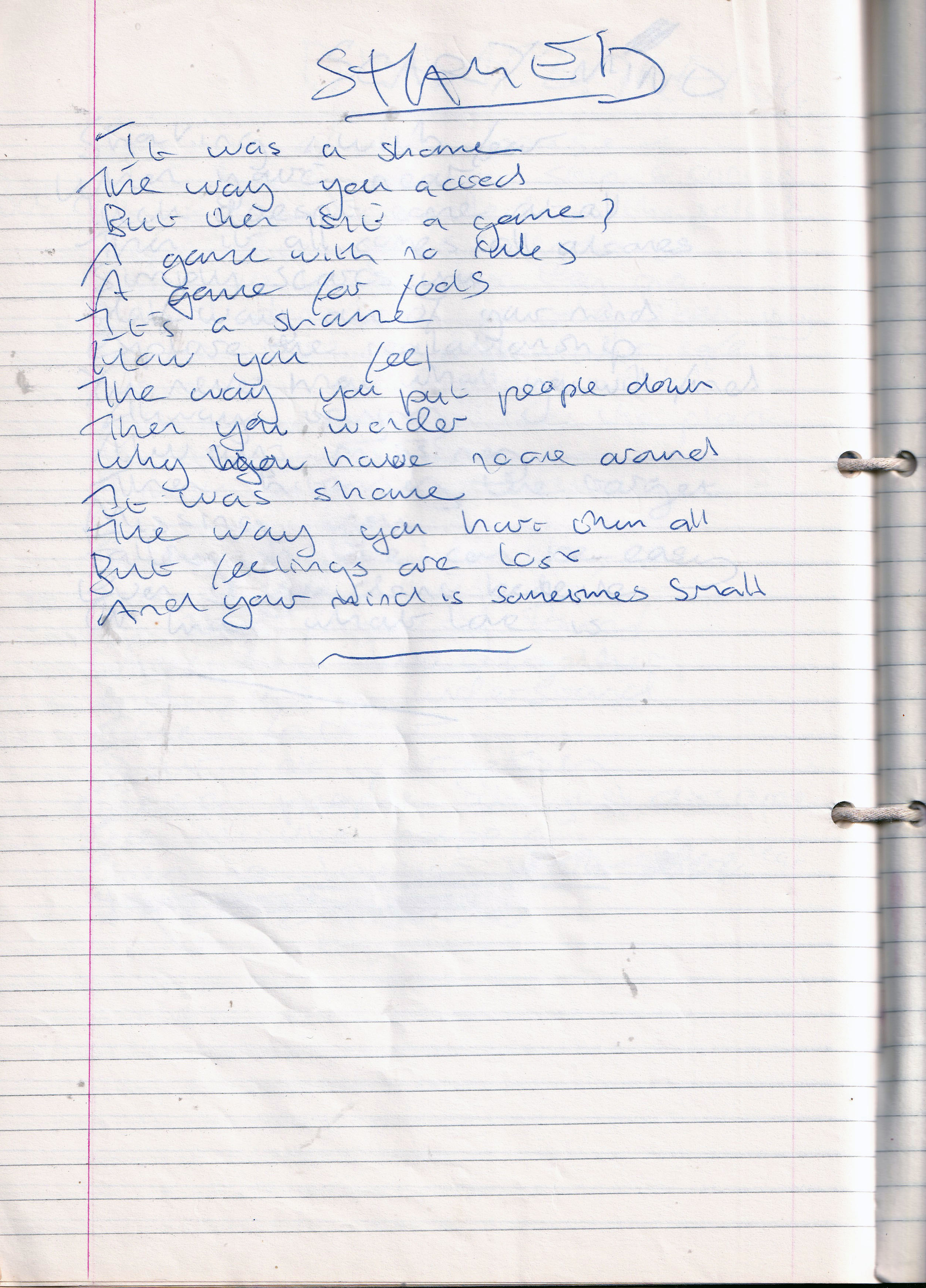 Shamed – Written Tuesday 15th February 1994 and October 1994 (Aged 18/19)